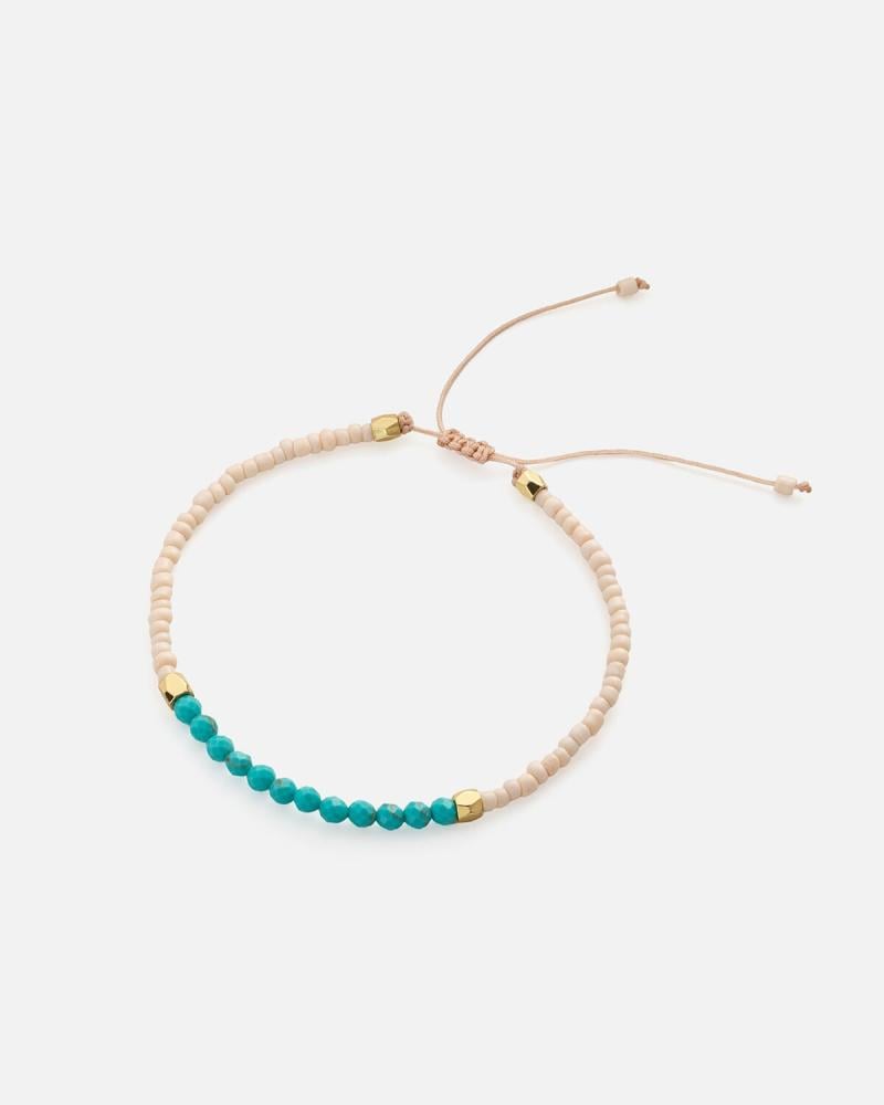 هذه الأسوارة اليدوية تعكس البساطة والهدوء بتدرجاتها الناعمة من الأبيض الناصع ولمسات الفيروز المنعشة. تضفي الفواصل الذهبية لمسة أنيقة ، بينما يمنح الحبل القابل للتعديل راحة مثالية قطعة راقية تلائم الذوق الهادىء والتميز .