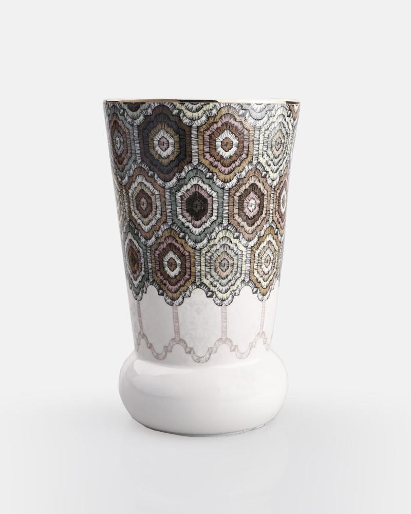 هذه المبخرة وعلبة البخور المصنوعة من السيراميك تجسد روعة التصميم التقليدي بلمسة عصرية مبهرة ، يتميز كلا القطعتين بنقوش هندسية دقيقة مستوحاة من الفن الإسلامي ، حيث تتداخل الأشكال السداسية بشكل متناغم يعكس الفخامة والأصالة . اللون الداكن في الزخارف يضفي اللمسة الفاخرة فتبرز التفاصيل بدقة ، المبخرة بتصميم عامودي تعكس حضورا بارزا ، وعلبة البخور قطعة فنية مصممة لتكمل المشهد بجاذبية متناغمة .