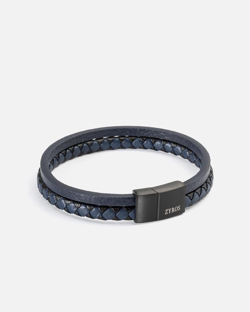 - الاسوارة من الجلد بلون أزرق وأسود بقفل أغلاق معدني بلون أسود