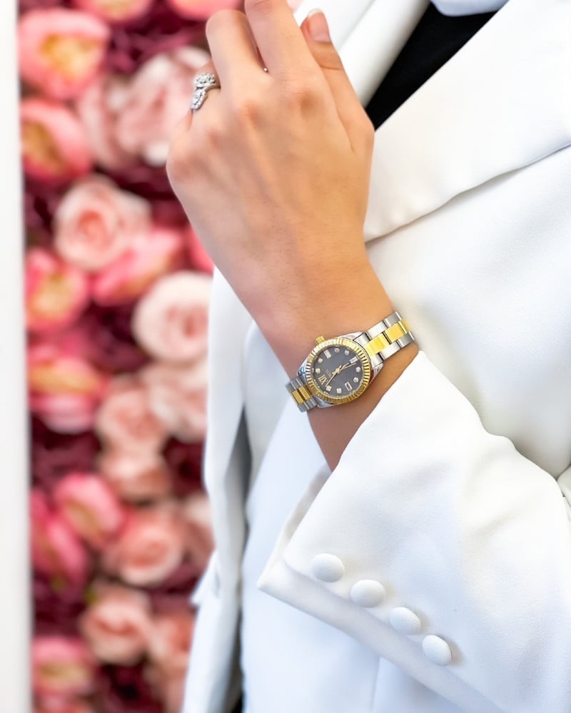 ساعه نسائيه باللونين الفضي والذهبي عصرية