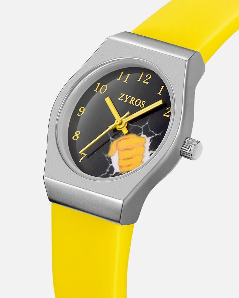 هذه الساعة ليست مجرد أداة لمعرفة الوقت، بل نافذة إلى عالم من المرح والإبداع! بتصميمها الجذاب الذي يمزج بين البساطة والخيال، تتميز هذه الساعة بإطار معدني أنيق ، يشبه درعًا صغيرًا يحمي لحظات الطفولة السعيدة. أما العقارب، فهي أشبه بألوان فنان مغامر؛ . و الأرقام مرسومة بألوان زاهية، وهناك طبعة لقبضة وكأنها قفزت من كراسة رسم مليئة بالحيوية، بينما تضفي الخلفية البيضاء لمسة من الصفاء تجعل كل لحظة أكثر وضوحًا. السوار الناعم يلف المعصم براحة وأناقة، ليمنح الطفل شعورًا بالتميز في كل ثانية. إنها ليست مجرد ساعة، بل لعبة ذكية، مغامرة صغيرة تزين المعصم، وتذكر الطفل دائمًا أن الوقت ليس مجرد أرقام، بل لحظات ممتلئة بالخيال والاكتشاف!