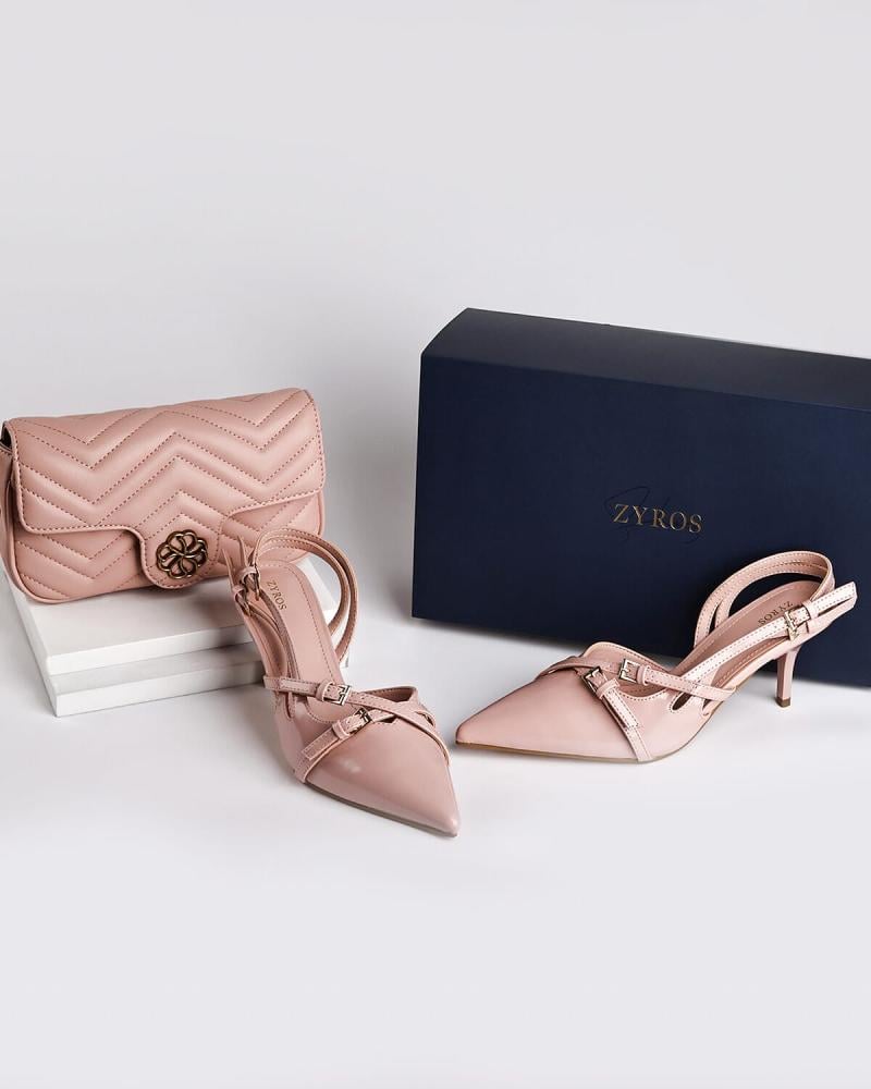 هذا الطقم الوردي الأنيق هو تجسيد للفخامة الكلاسيكية بلمسة عصرية آسرة. الحقيبة، بتصميمها الناعم والطيات الراقية، تشع بسحر الأنوثة والرقي ، أما الحذاء، فهو قطعة فنية بحد ذاته، بكعبه المتوسط الذي يجمع بين الأناقة والراحة، وتصميمه المدبب الذي يعزز من جاذبية القدم. التفاصيل المعدنية البراقة تضفي لمسة من الترف، وكأنها جوهرة تتلألأ مع كل خطوة. هذا الطقم رفيق الليالي الحالمة والمناسبات الفاخرة، مثالي للمرأة التي تؤمن أن الأناقة الحقيقية تكمن في التفاصيل المدروسة واللمسات الراقية.