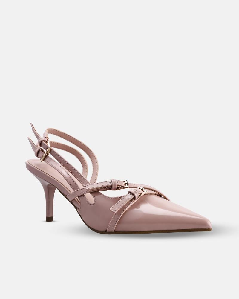 - وصف الحذاء: حذاء نسائي بكعب قصير يناسب اطلالتك في كل الأوقات ويتزين بأحزمة يقفل معدني.
