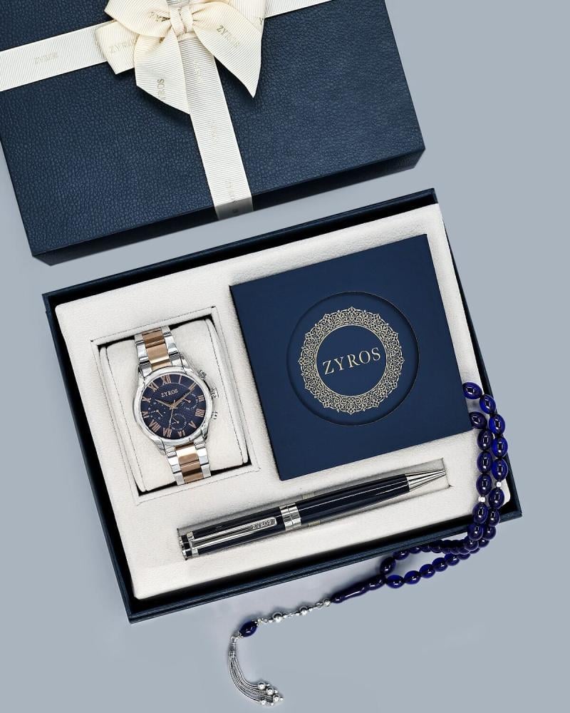 طقم يتحدث بلغة الفخامة والتفاصيل المتقنة، يضم ساعة أنيقة بتصميم عصري يرمز للدقة ، ومسبحة فاخرة لإضفاء لمسة روحانية راقية، وقلم معدني أنيق يجسد قوة الحضور. مزيج مثالي للرجل الذي يقدّر الجمال في كل تفصيلة.