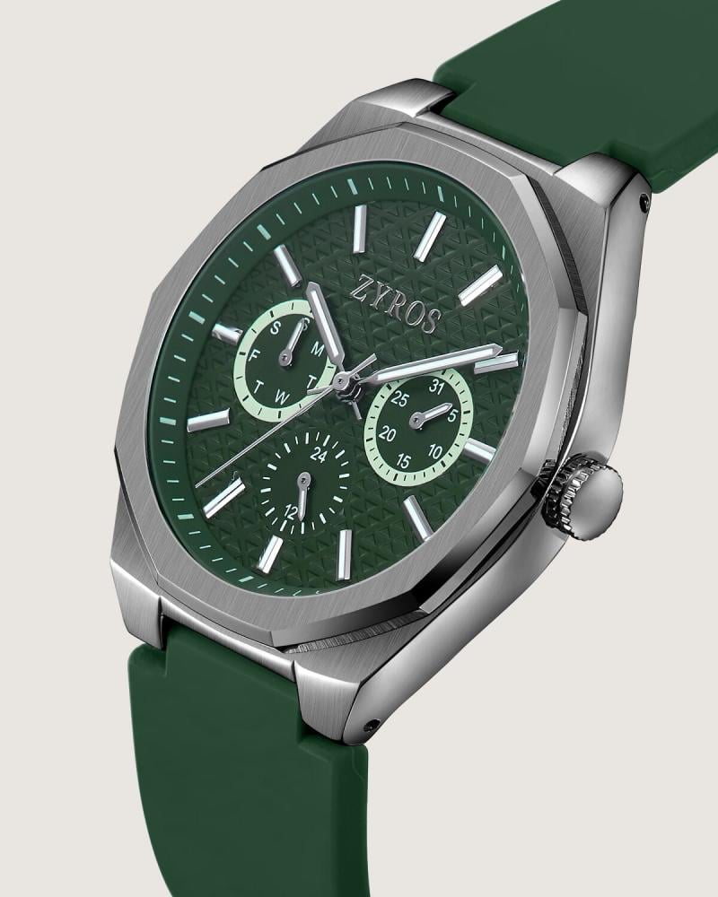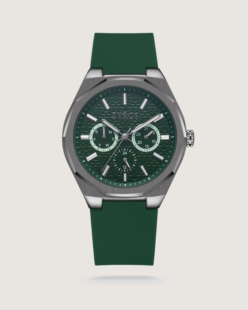 أما السير الأخضر، المصنوع من الربل الفاخر، فيعانق معصمك السير برفق، مانحًا شعورًا بالراحة والأناقة في كل الأوقات.