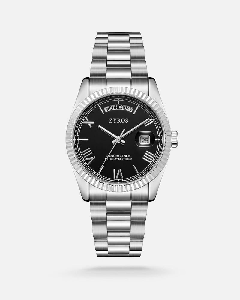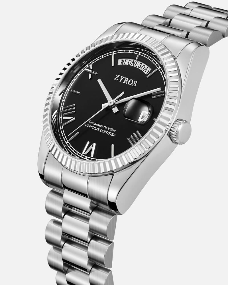 في هذه الساعة، يلتقي الزمن بالثبات. تصميمها يُحاكي وضوح الرؤية من حيث الوقت واليوم والتاريخ، وميناؤها الهادى الذي يترجم الوقت يروي سكونًا ووقارًا .عقارب و كأنها تمرّ على محطات من المجد، وسوار معدني من الستيل مصقول يوحي بتفاصيل لا تُجامل في أناقتها.تفاصيل تحاكي طبع الرجال في الشدة واللين .
