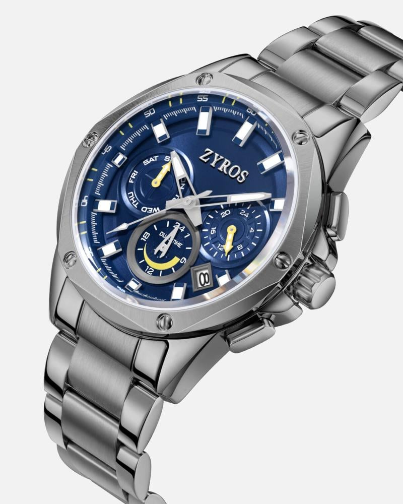 دقة التصميم والأناقة ، تجتمعان في تحفة فنية على معصمك.  هيكل من الفولاذ المقاوم للصدأ، بتصميم قوي، يجسد روح العصرية.  ميناء واسع و ساحر، وعقارب ناعمة، تمنحك قراءة واضحة للوقت في جميع الظروف. حيث يلتقي التصميم الأنيق بالفخامة الخالدة، لتكون إضافة مميزة إلى إطلالتك.