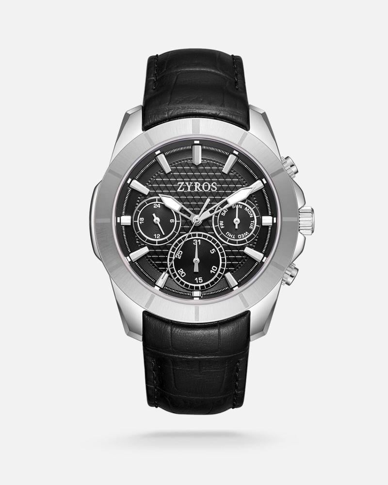 - ساعة رجالية بسير من الجلد باللون الأسود