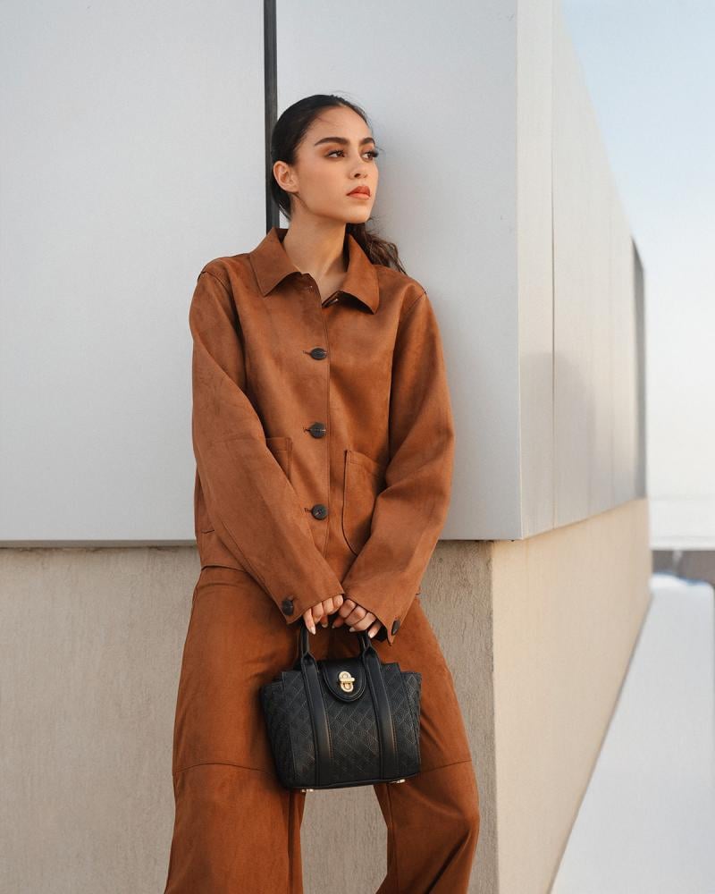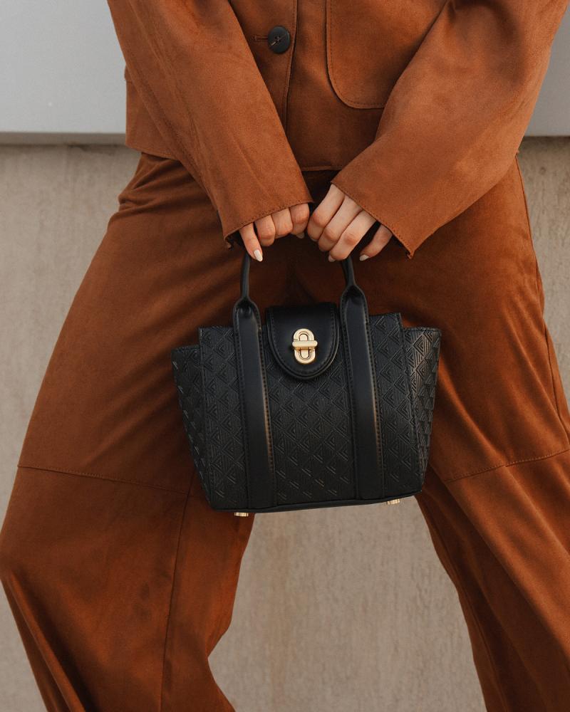 تألّقي بلمسةٍ من الفخامة مع هذه الحقيبة الراقية التي تمزج بين الأناقة الكلاسيكية والحداثة العصرية. بلونها العميق وتصميمها المنقوش برسومات هندسية متداخلة، تعكس هذه الحقيبة حسًّا راقيًا بالفخامة والتفرد. يبرز قفلها الذهبي اللامع كلمسة نهائية تعزز من طابعها الفاخر، بينما تضيف السلسلة المعدنية أناقة لا تُقاوم وتوازنًا مثاليًا بين الجرأة والرقي. أما المقبض المزدوج، فيمنحك حرية الاختيار بين حملها بيدك أو ارتدائها بأسلوب عملي. صممت هذه الشنطة لتكون رفيقتك المثالية لحفظ الأساسيات بأناقة لا تُضاهى.