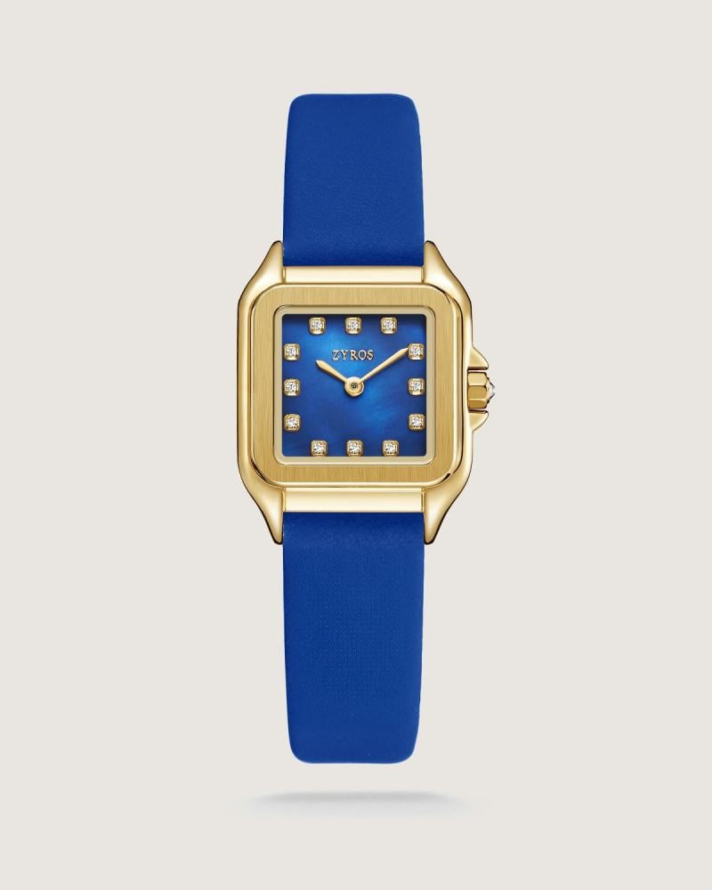 تتميز هذه الساعة الفاخرة من ZYROS بتصميمها الأنيق الذي يجمع بين الفخامة والبساطة، مع ميناء أزرق عميق وإطار بشكل مربع يضفي لمسة من التميز. يكتمل سحرها بسوار جلدي أنيق تكتمل به أناقتك . إنها أكثر من مجرد ساعة، بل لمسة من الأناقة تعكس شخصية قوية وساحرة.