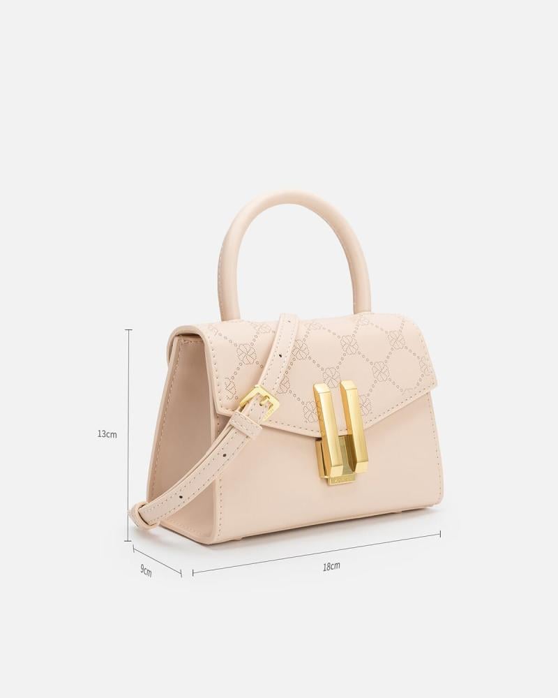 شنطة صغيرة بتصميم راق يفيض بالأناقة والرقي ، مثالية للمرأة العصرية التي تعشق التفاصيل الفاخرة ، تتميز بلمسات ذهبية فخمة وإغلاق أنيق يعكس الفخامة والتميز ، خيارك الأمثل للإطلالات الراقية والمناسبات الخاصة .