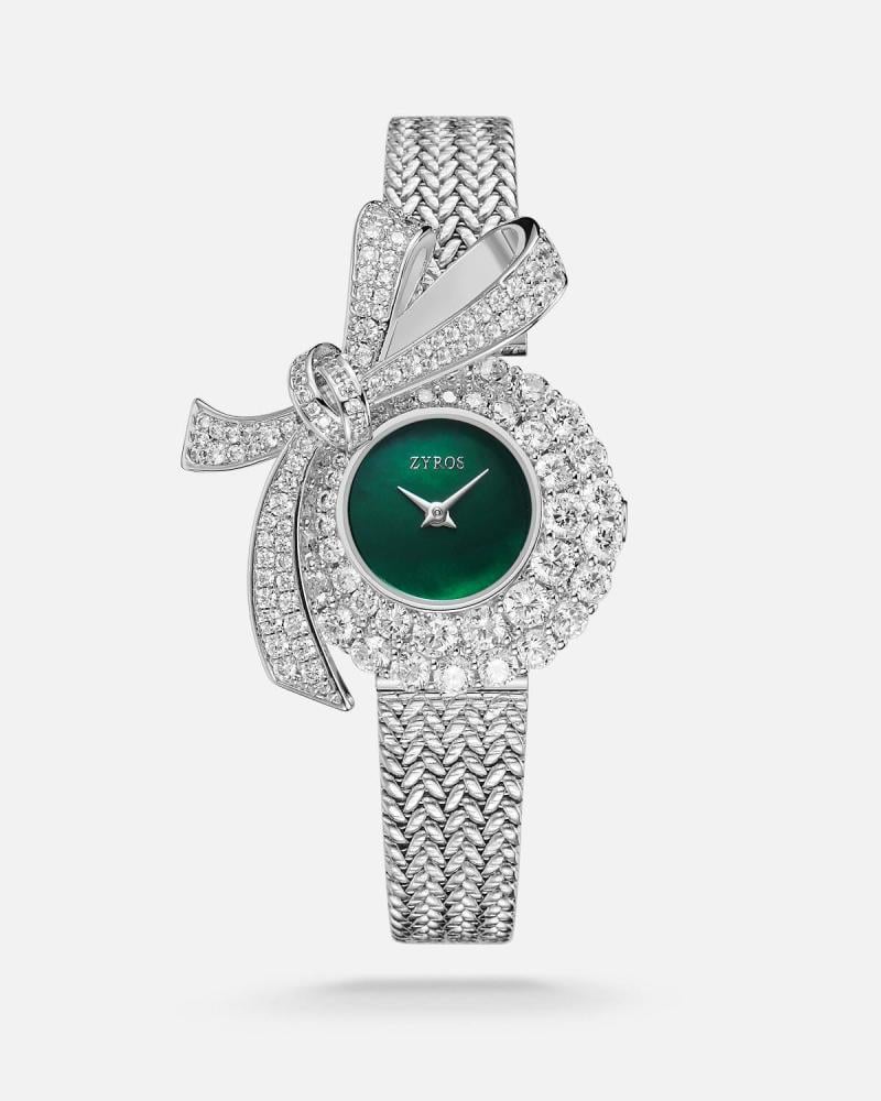 - الميناء: باللون الأخضر مع إطار مرصع بفصوص الزركون اللامعه
