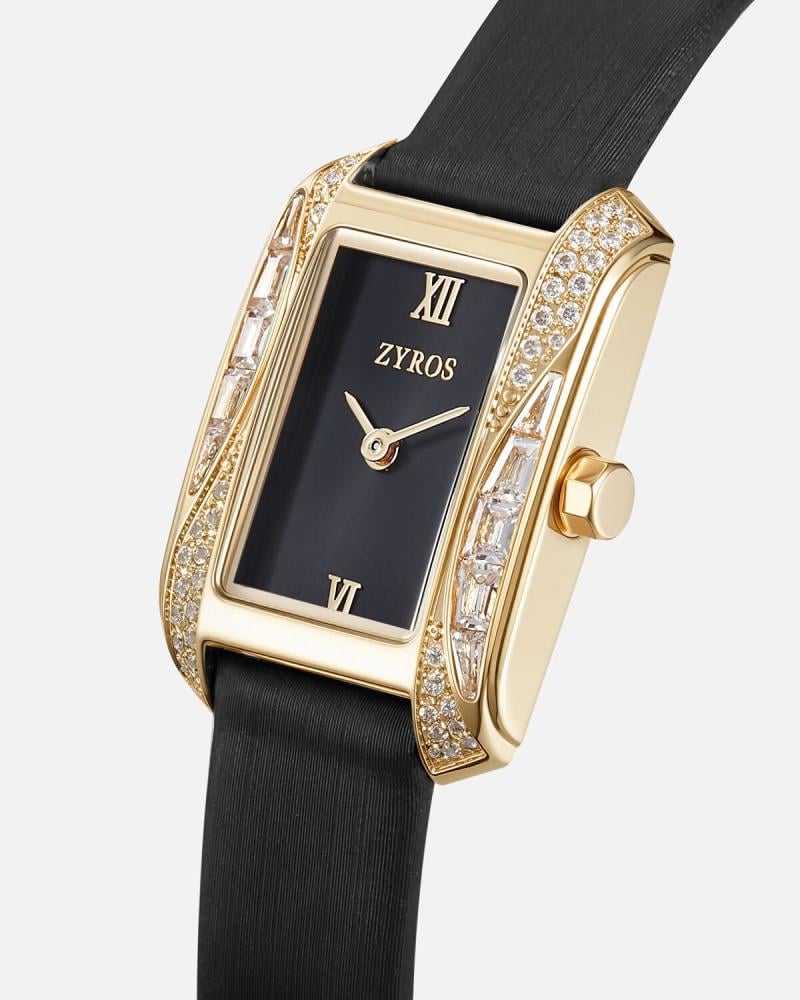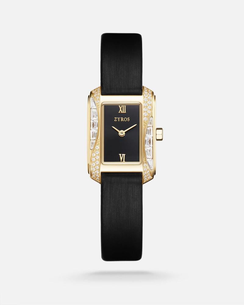 هذه الساعة الفاخرة تجسد الأناقة الكلاسيكية بروح عصرية راقية. يزينها إطار مستطيل بفصوص من الزركون تعكس لمسة من الفخامة، فيما يضفي الميناء الداكن عمقًا وسحرًا خاصًا، يكتمل بأرقام رومانية راقية عند الساعتين XII و VI تضفي لمسة من التميز. أما السوار الجلدي فيعزز الطابع الكلاسيكي ويضمن راحةً استثنائية عند الارتداء. هذه الساعة ليست مجرد أداة لمعرفة الوقت، بل هي قطعة فنية تعبر عن الذوق الرفيع والشخصية الفريدة لمن يرتديها.