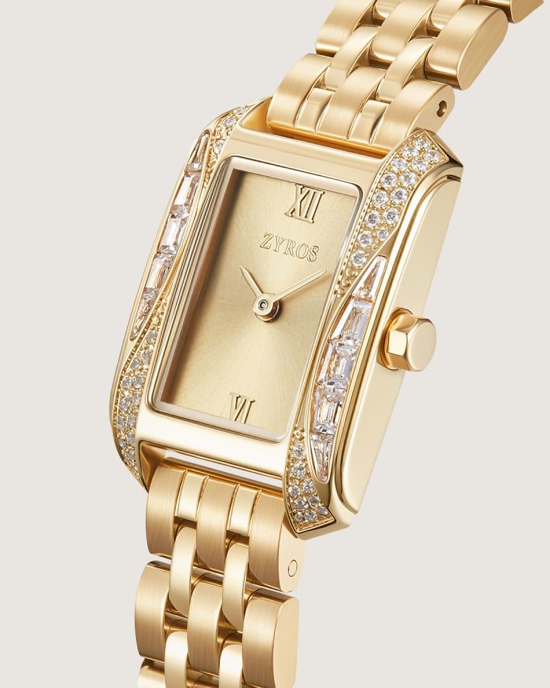 ساعة نسائية آسرة بتصميم مستوحى من سحر الأناقة، حيث يلتف سوارها الأنيق حول المعصم بانسيابية راقية، وكأنها اسوارة تنساب برشاقة. ميناء الساعة مصمم بأسلوب يعكس الفخامة والغموض، بينما تضيف التفاصيل الراقية لمسة من الجرأة والجاذبية. إنها ليست مجرد ساعة، بل قطعة فنية تتحدث بلغة الأناقة والقوة، لتمنح معصمك لمسة ساحرة لا تُقاوم.