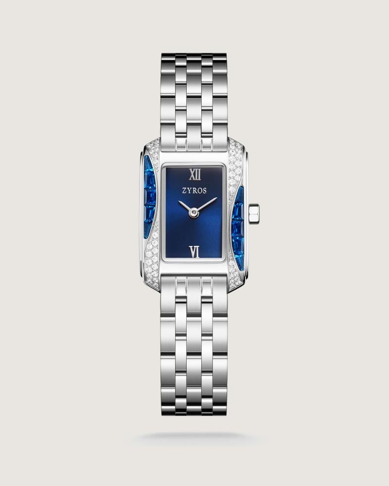 ساعة نسائية آسرة بتصميم مستوحى من سحر الأناقة، حيث يلتف سوارها الأنيق حول المعصم بانسيابية راقية، وكأنها اسوارة تنساب برشاقة. ميناء الساعة مصمم بأسلوب يعكس الفخامة والغموض، بينما تضيف التفاصيل الراقية لمسة من الجرأة والجاذبية. إنها ليست مجرد ساعة، بل قطعة فنية تتحدث بلغة الأناقة والقوة، لتمنح معصمك لمسة ساحرة لا تُقاوم.