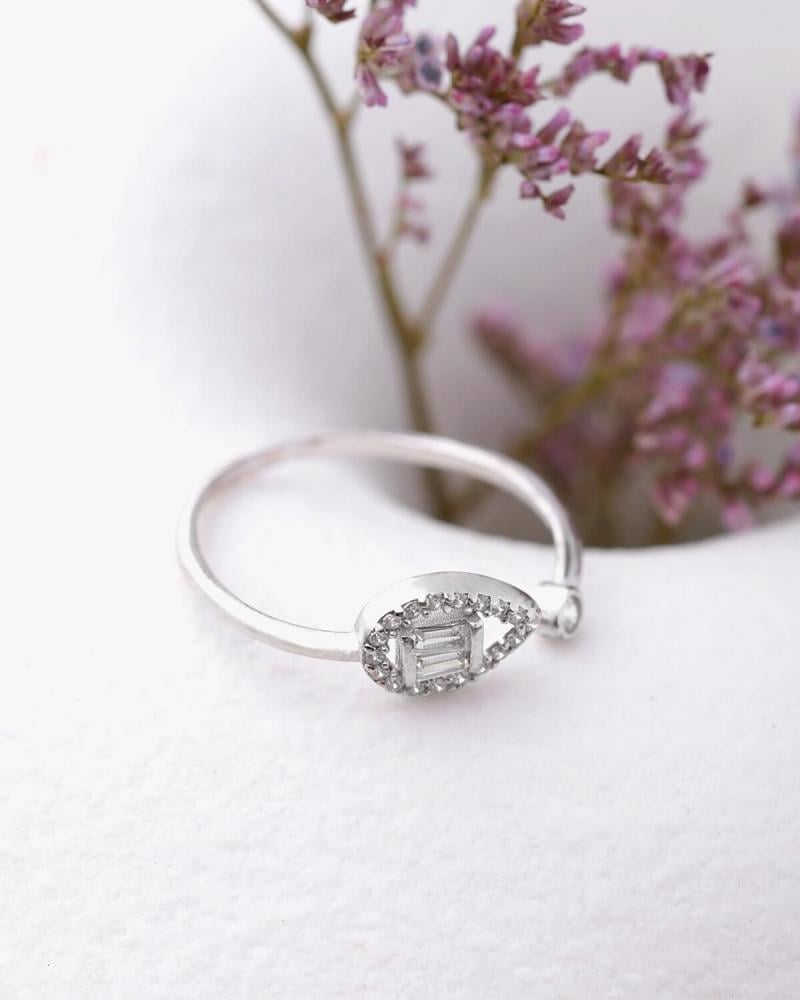 خاتم نسائي ينبض بالأناقة والجمال، مرصع بفصوص الزركون المتلألئة التي تضيف له لمسة من الفخامة والتميز، يتألق بجماله الفريد ويأسر الأنظار بتوهجه الرائع. الفصوص المحيطة بالحجر تضفي على الخاتم مظهرًا مميزًا يعكس براعة التصميم وحرفيته العالية. كل تفصيل في هذا الخاتم يعبر عن الرقي والذوق الرفيع، ليكون قطعة مجوهرات مثالية تكمل إطلالتك بكل فخامة. إنه الخاتم الذي يجسد التميز والتألق في كل لحظة.