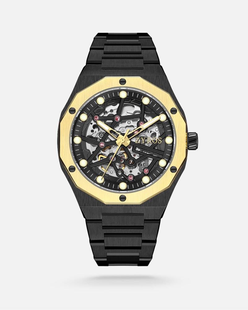 - ساعة رجالية اتوماتيك بسير من الستيل عالي الجودة المقاوم للماء باللون الأسود