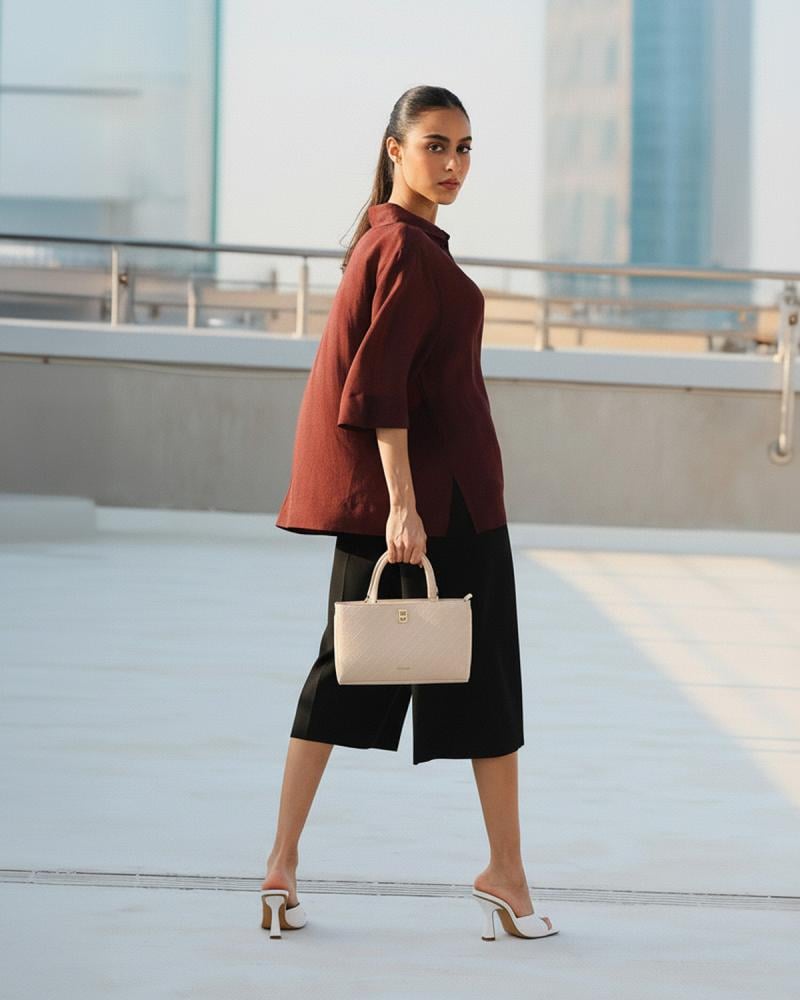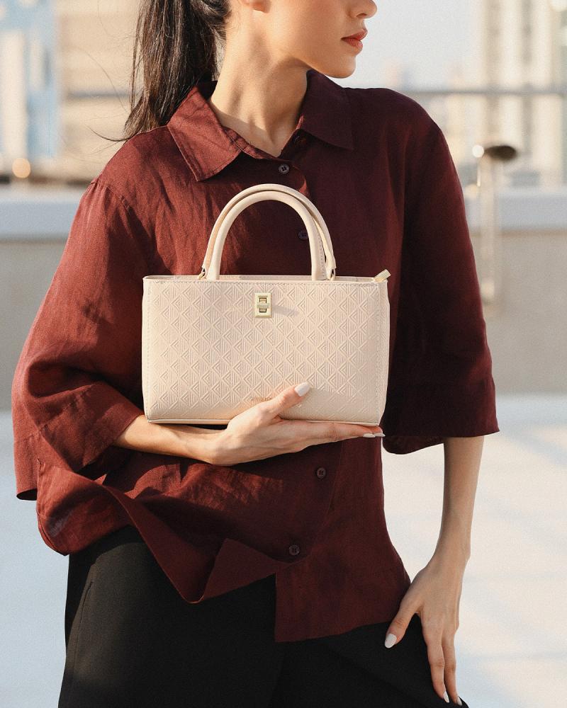 أناقة هندسية في كل تفصيلة! هذه الحقيبة ليست مجرد إكسسوار، بل هي قطعة فنية تجسد الأناقة العصرية بلمسة من الرقي. لونها الهادئ يضفي عليها جاذبية خاصة، وتصميمها الهندسي الفريد يلفت الأنظار. الجيب الأمامي الصغير يضيف لمسة عملية، ويجعلها مثالية لحمل ضرورياتك اليومية بكل سهولة. مصنوعة من أجود أنواع الجلد، لتمنحكِ ملمسًا ناعمًا وشعورًا بالفخامة. إضافة مثالية: لا تترددي في اقتناء هذه الحقيبة، فهي ستكون إضافة مثالية لخزانة ملابسك، وسترافقكِ في كل مناسبة، لتمنحكِ إطلالة لا تُنسى
