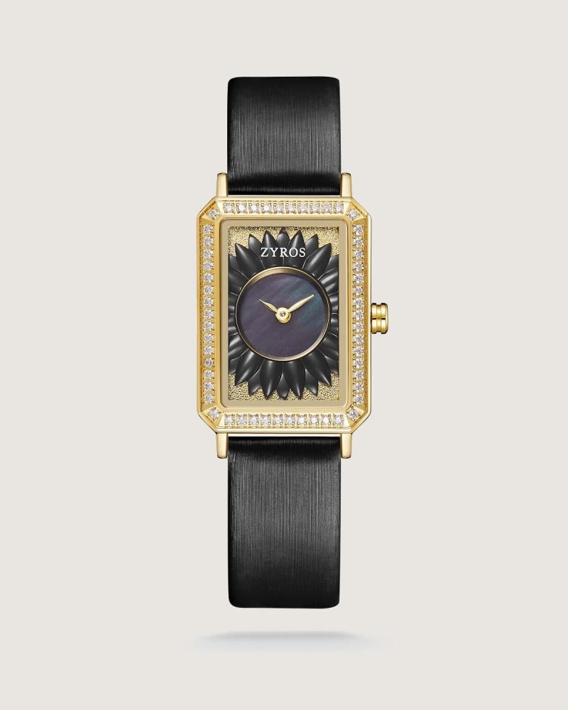 - ساعة نسائية بسير من الجلد الفاخر باللون الأسود