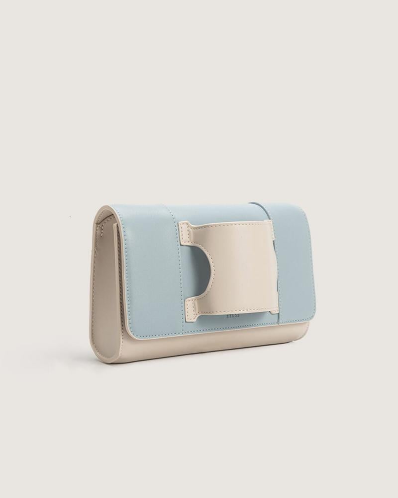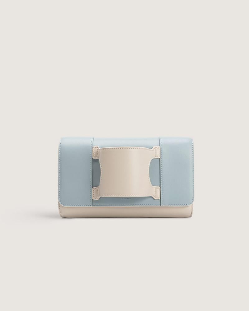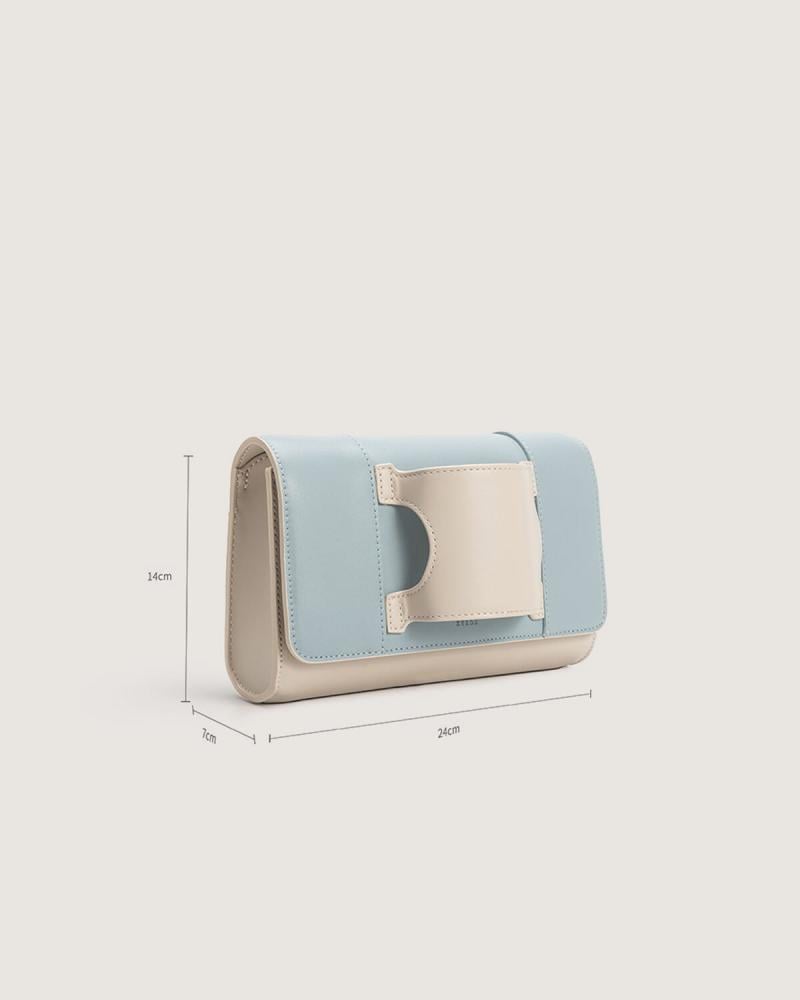 - شنطة يد نسائية من الجلد باللون الأزرق والبيج