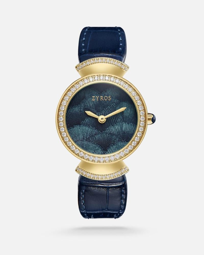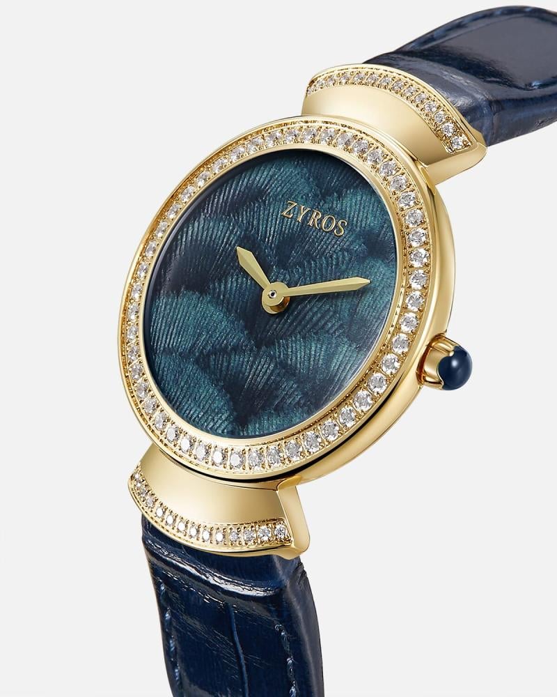 - ساعة نسائية بسير من الجلد الفاخر باللون الأزرق