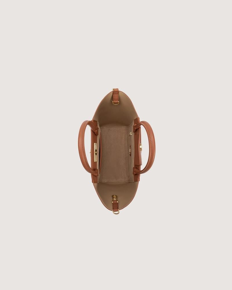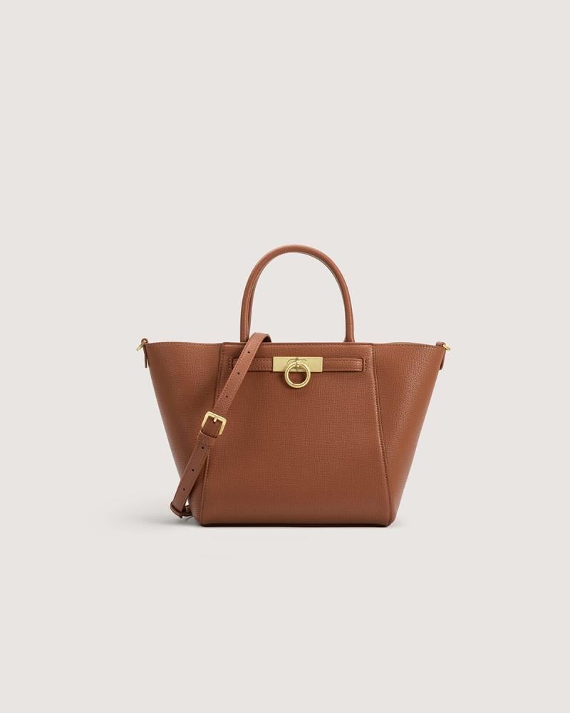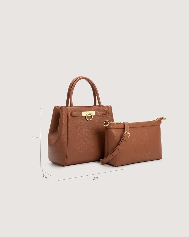 - شنطة نسائية من الجلد باللون البني بسعة داخلية ومساحة منظمة