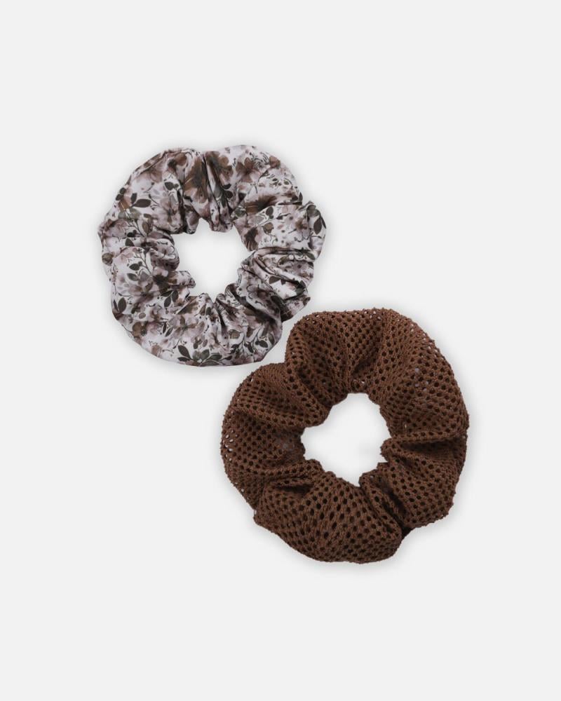 مجموعة من ربطات الشعر المصنوعة من قماش مطاطي مجعد، تتنوع بين التصاميم البسيطة والسادة باللون البني، وأخرى مزينة بنقوش زهرية ناعمة تضفي لمسة أنثوية ساحرة. تتميز بحجمها المناسب للارتداء اليومي، مما يجعلها خيارًا عمليًا لإضافة لمسة أنيقة وعفوية إلى تسريحات الشعر.