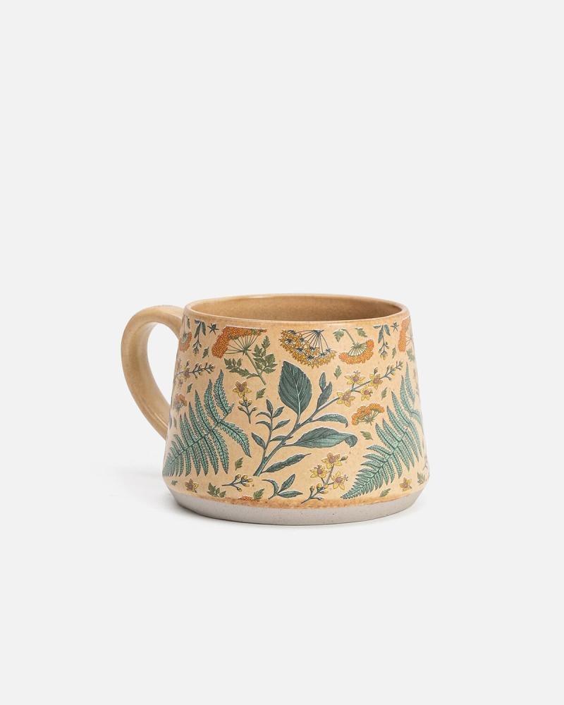 هذا الكوب يزهر كحديقة صباحية، مزدان بنقوش نباتية ناعمة وأوراق شجر هادئة تلامس القلب بلطف. ألوانه الهادئة وتفاصيله الدقيقة تجعله رفيقًا مثالياً للحظات التأمل، وكأنه يهمس: “خذ وقتك، فالعذوبة في التفاصيل.