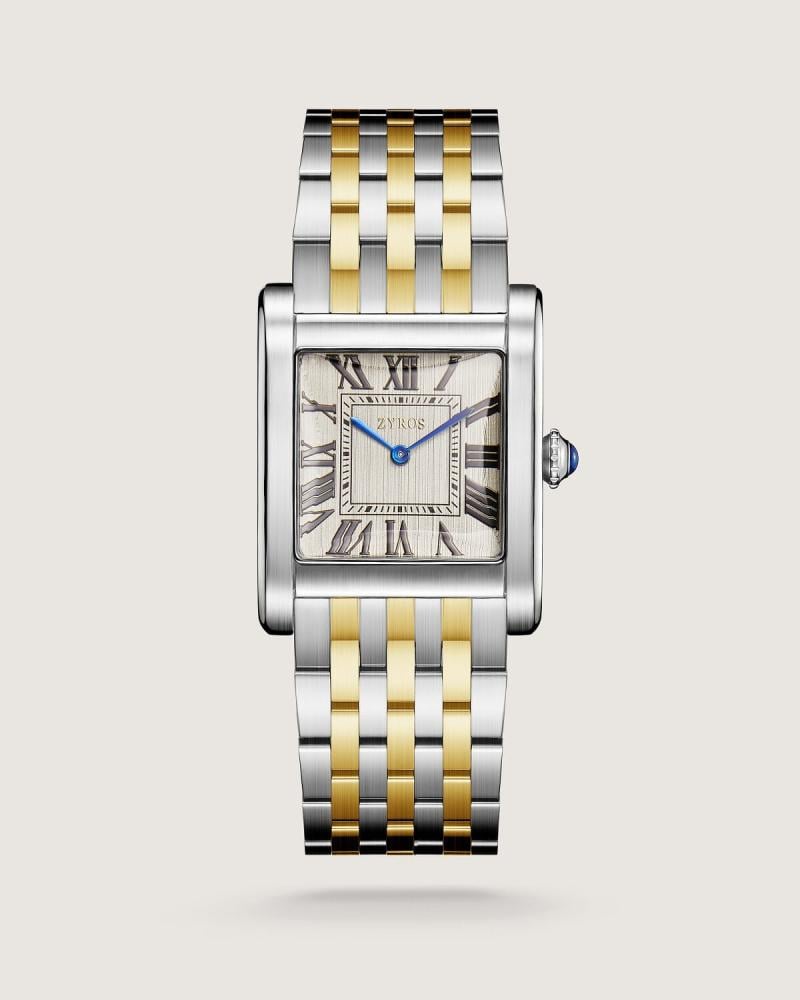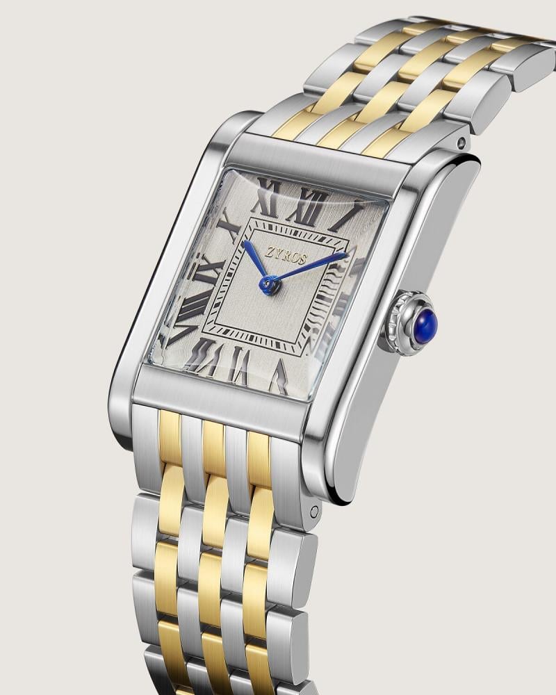 أيقونة الأناقة العصرية، بتصميم يجمع بين الفخامة والجرأة. هيكل من الفولاذ المقاوم للصدأ، بتشطيب لامع، يعكس بريق شخصيتك. ميناء تتناغم فيه العقارب والمؤشرات الذهبية ، لتمنحك قراءة واضحة للوقت. وأرقام رومانية تضيف لمسة من التعقيد والتفرد. سوار من الفولاذ المقاوم للصدأ، بتصميم متناسق، يمنحك راحة لا مثيل لها، وثباتًا يواكب إيقاع حياتك. "حيث يلتقي التصميم العصري باللمسة الكلاسيكية، لتكون إضافة مميزة إلى إطلالتك."