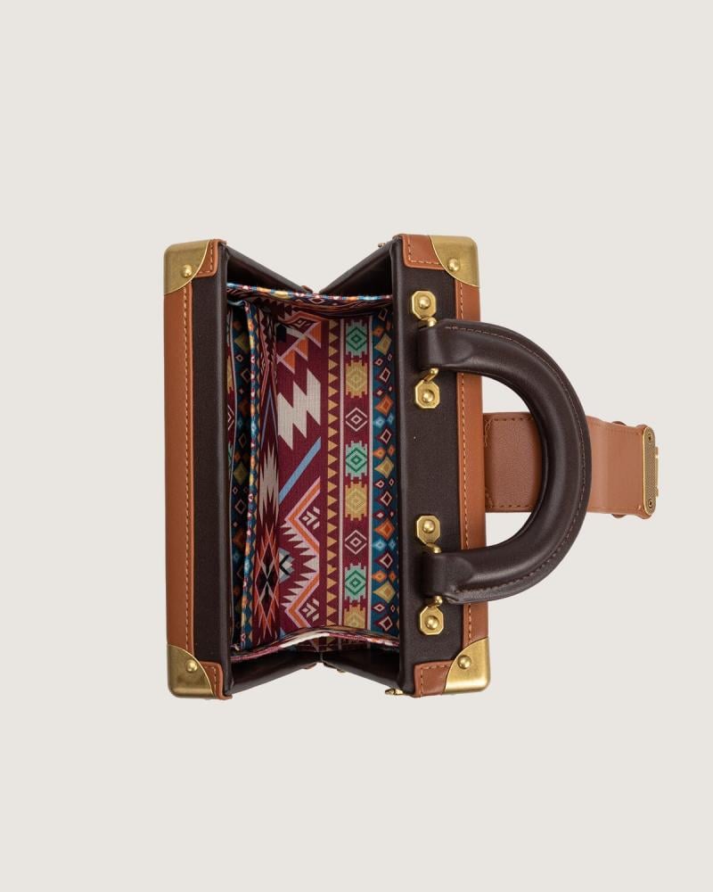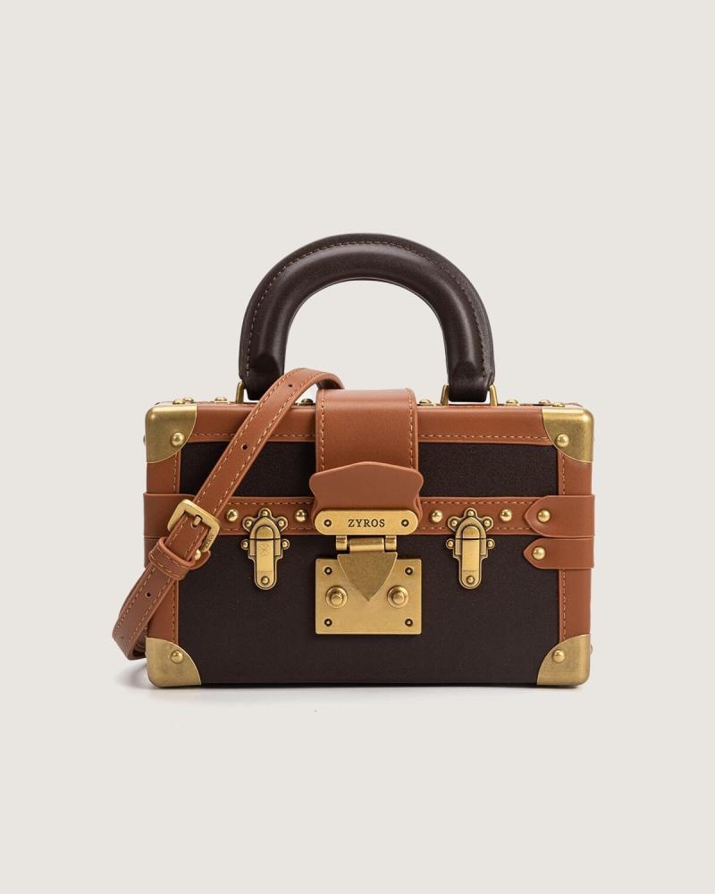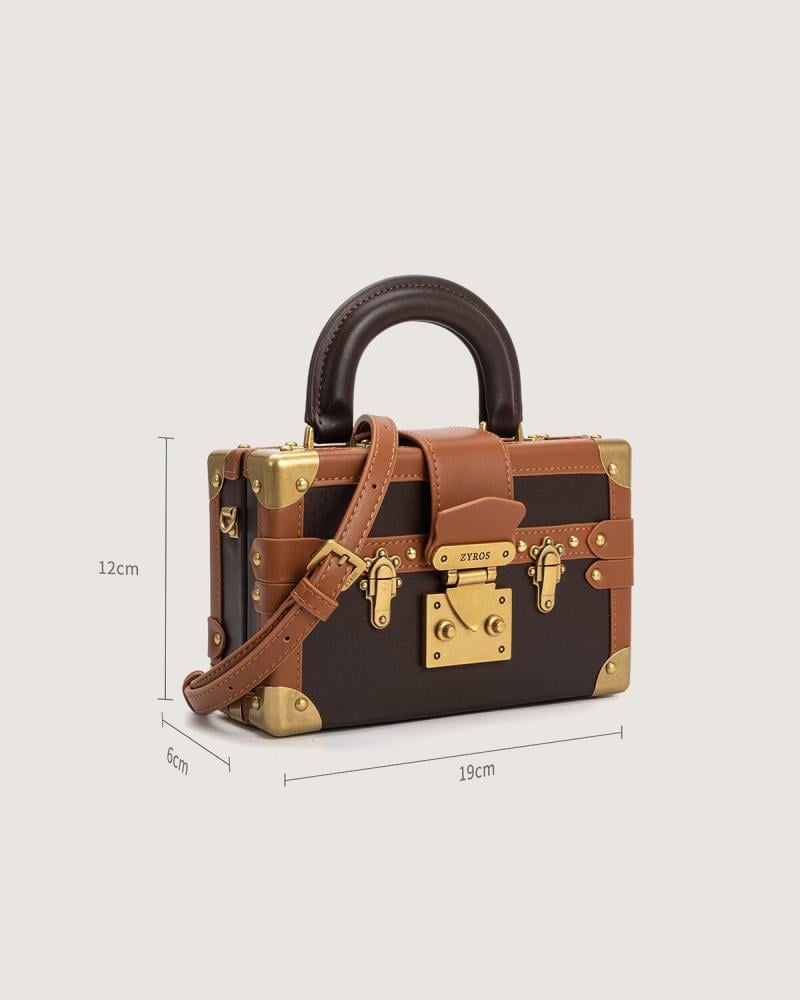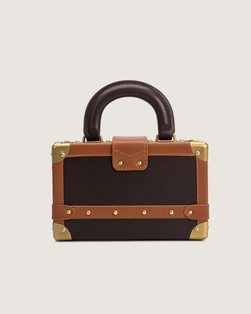 - شنطة بشكل صندوق فاخر من الجلد باللون الأسود والبني