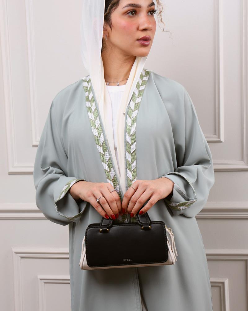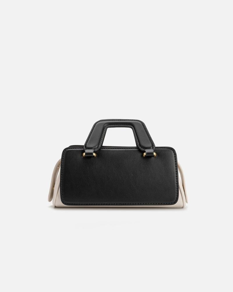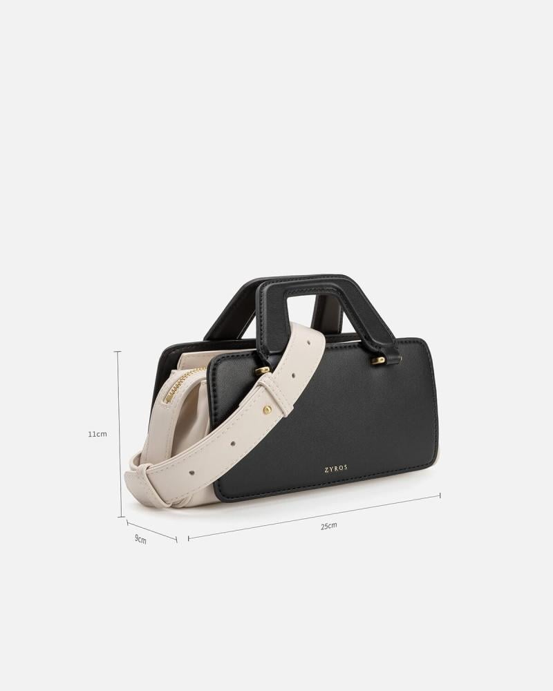 تجسّد هذه الحقيبة مزيجًا ساحرًا من الجرأة والأناقة، بتصميم هندسي عصري يلفت الأنظار. تميزها الثنائية اللونية بين الأسود الكلاسيكي والأبيض الناصع، مما يمنحها لمسة فاخرة وعصرية. يضيف الحزام العريض القابل للتعديل لمسة من التوازن بين العملية والفخامة، بينما تعزز التفاصيل المعدنية الذهبية رونقها الساحر. خيار مثالي لكل من تبحث عن التميز في كل إطلالة .