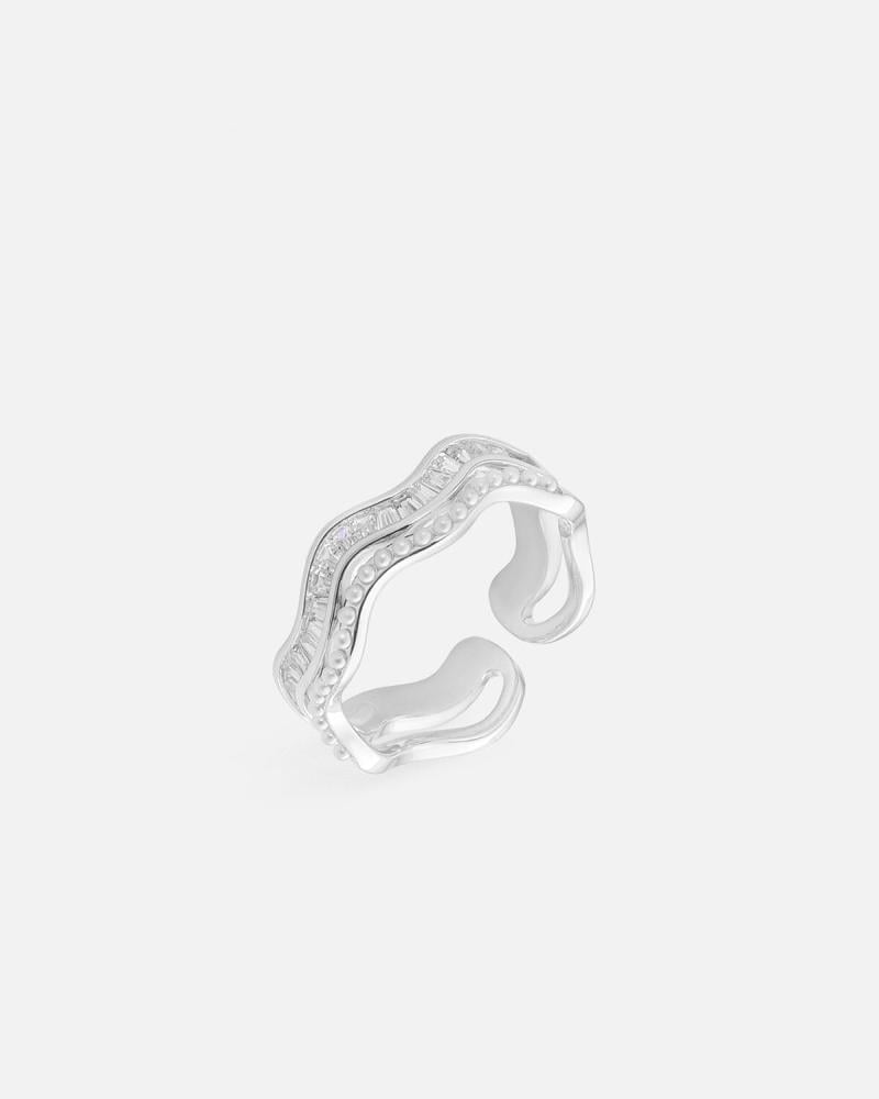 - يتميز الخاتم بتصميمه المميز و المتعرج والذي يتزين بفصوص من الزركون البراق ومجموعة من الخرز اللؤلؤي الصغير