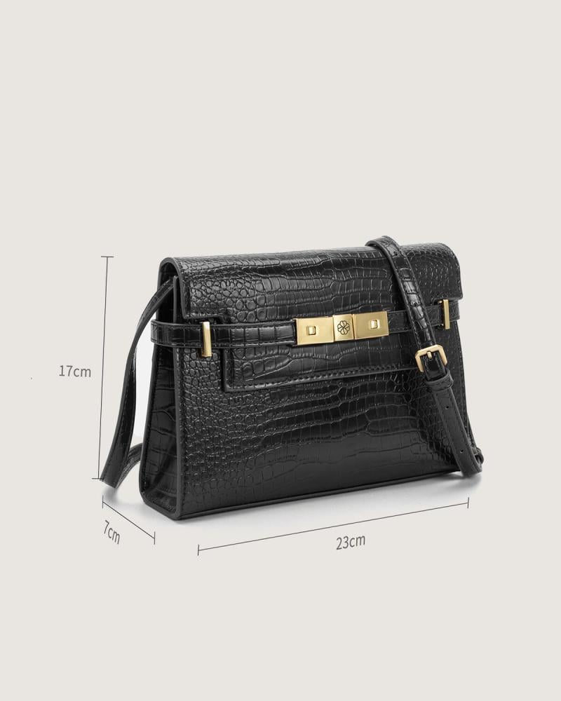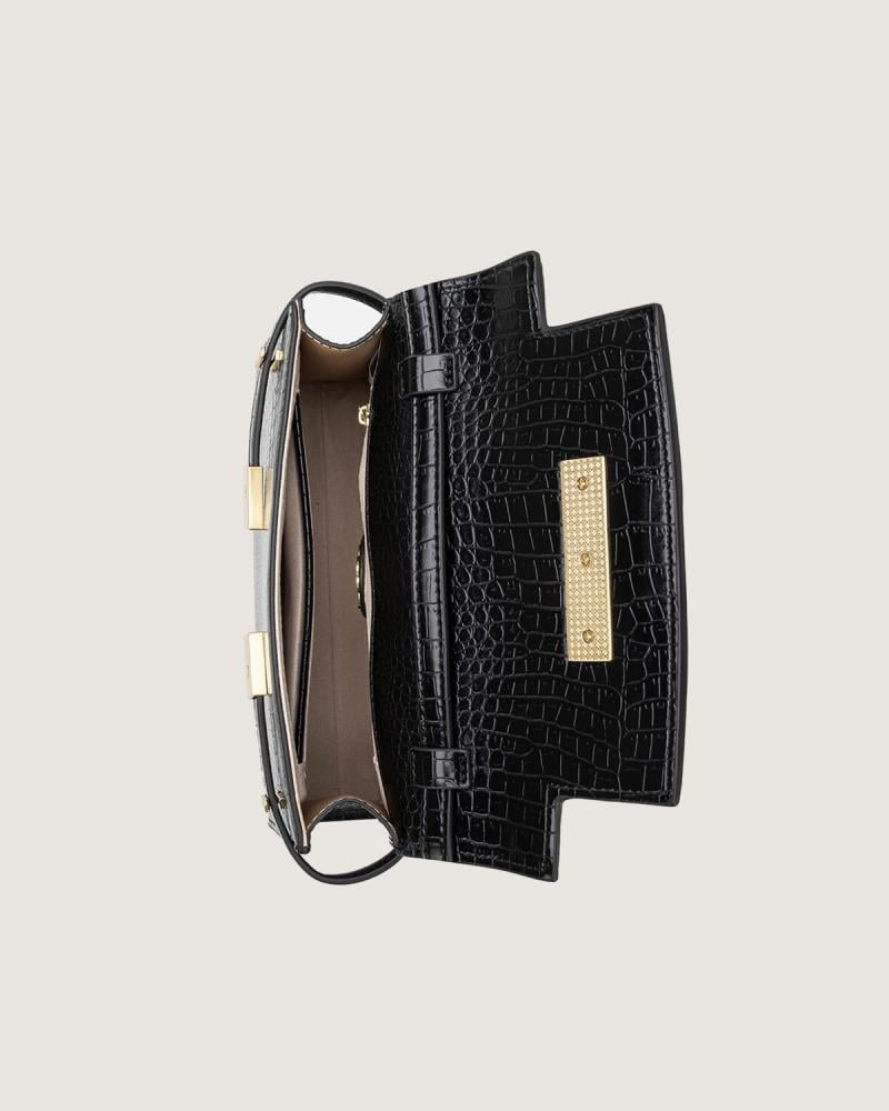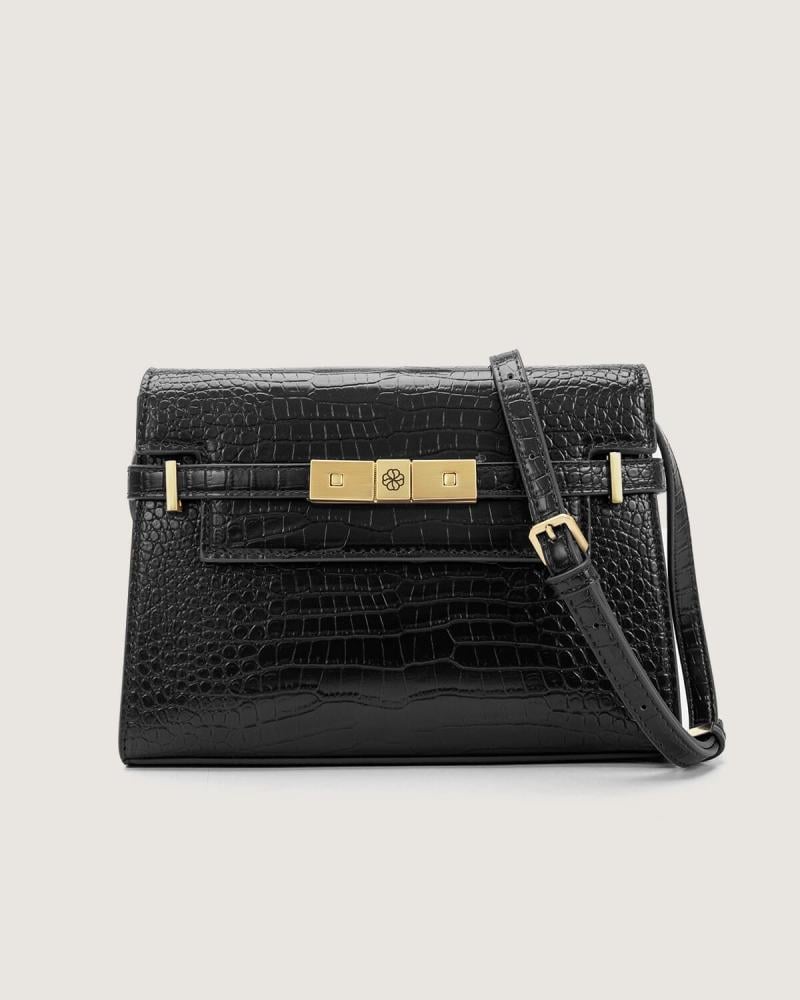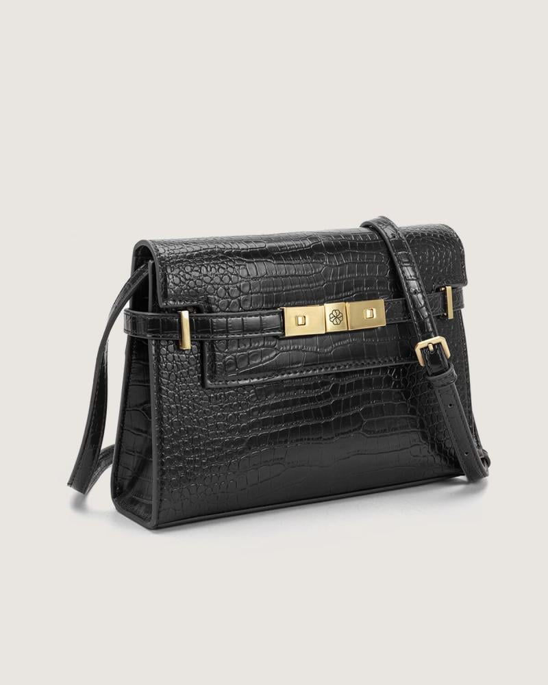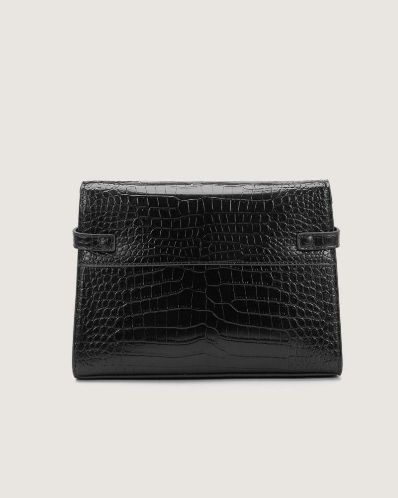 - شنطة من الجلد بنقشة جلد التمساح باللون الأسود