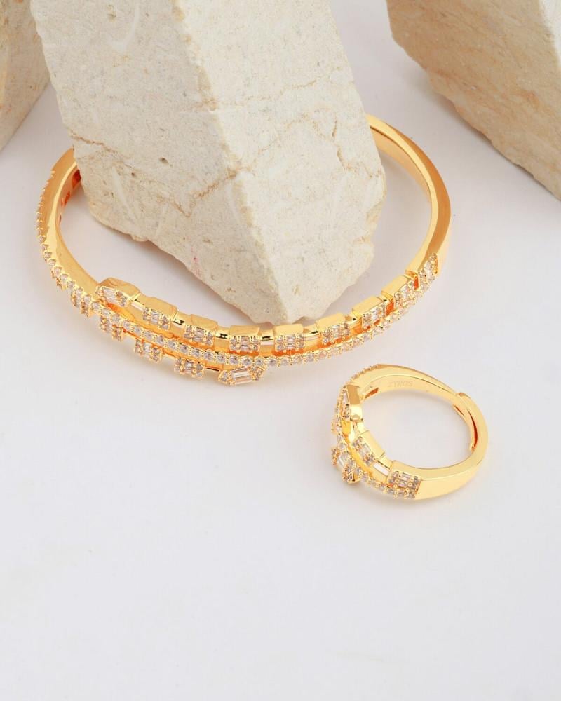 - وصف الطقم : طقم من اسوارة وخاتم مرصع بأحجار وفصوص الزركون اللامع .