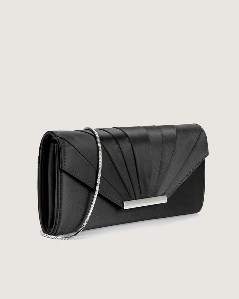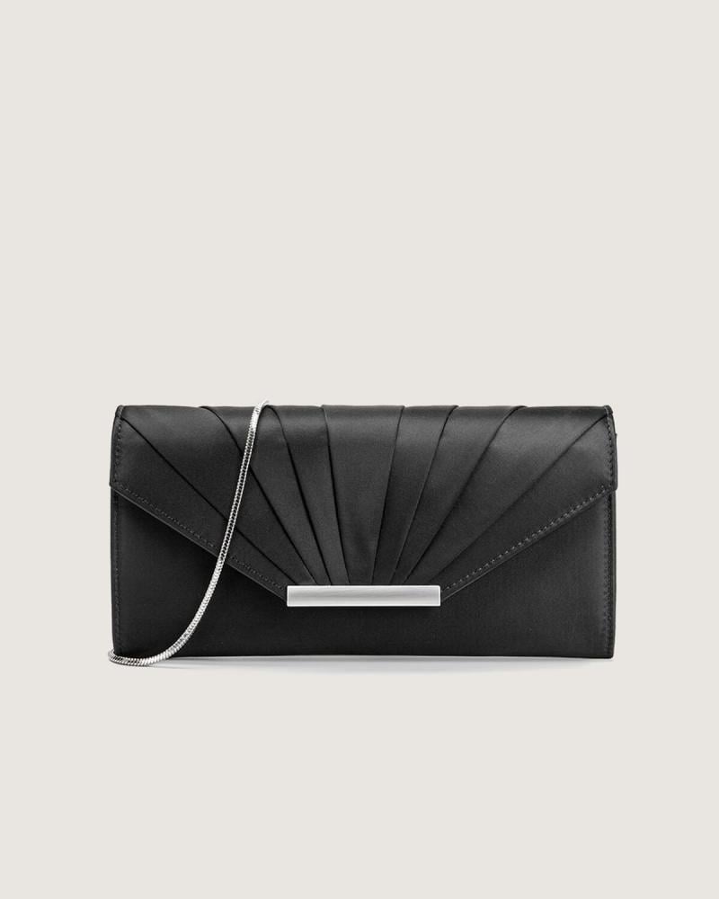 في أمسية ساحرة حيث يلمع القمر كقطعة من الفضة في سماء الليل، كانت الحقيبة الصغيرة تتألق تحت الأضواء كما لو كانت نجمة سقطت من السماء. تصميمها الراقي بأشعة من الخطوط المتباعدة يشبه شروق الشمس على أفق غامض، بينما تضفي اللمسة المعدنية على إغلاقها لمحة من الفخامة الهادئة. لم تكن مجرد حقيبة، بل تفصيلة دقيقة تكمّل إطلالة امرأة تعرف كيف تسرق الأنظار بصمت.