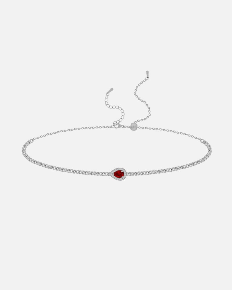 سلسال نسائي من زايروس باللون الفضي بتصميم شوكر عصري ، يتميز السلسال بالحليه في المنتصف بشكل الدمعه الصغيره بلون أحمر و مرصعه بفصوص الزركون البراقه ، اختيارك الأنيق اليومي او مع فستان سهره ، يزيد هذا السلسال من جاذبيتك وأناقتك في كل الأوقات .