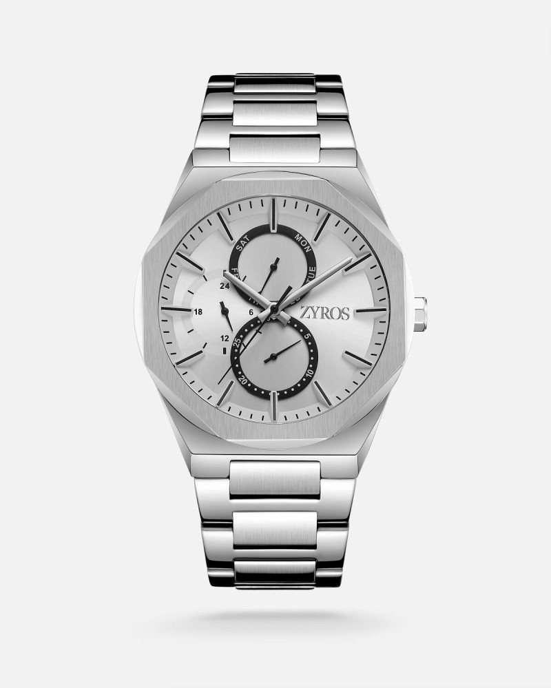 - Men's watch with a silver-colored steel strap and a silver-colored dial