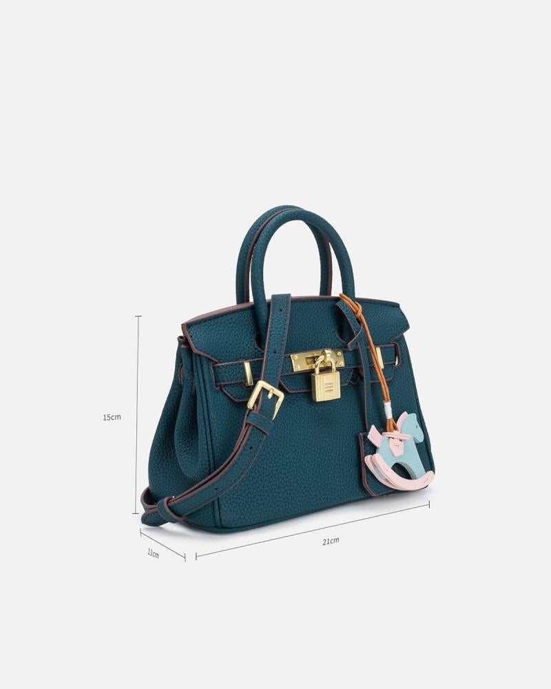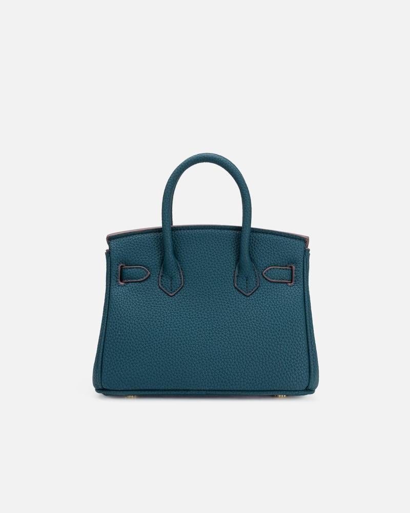 • وصف الشنطة: شنطة من الجلد النباتي الفاخر بلون أزرق ، مُزيّنة بتفاصيل وقفل مميز وتعليقة أنيقة ، شنطة تجمع بين السعة وأناقة التصميم، لتكون خيارك الأول في أيامك الحافلة.