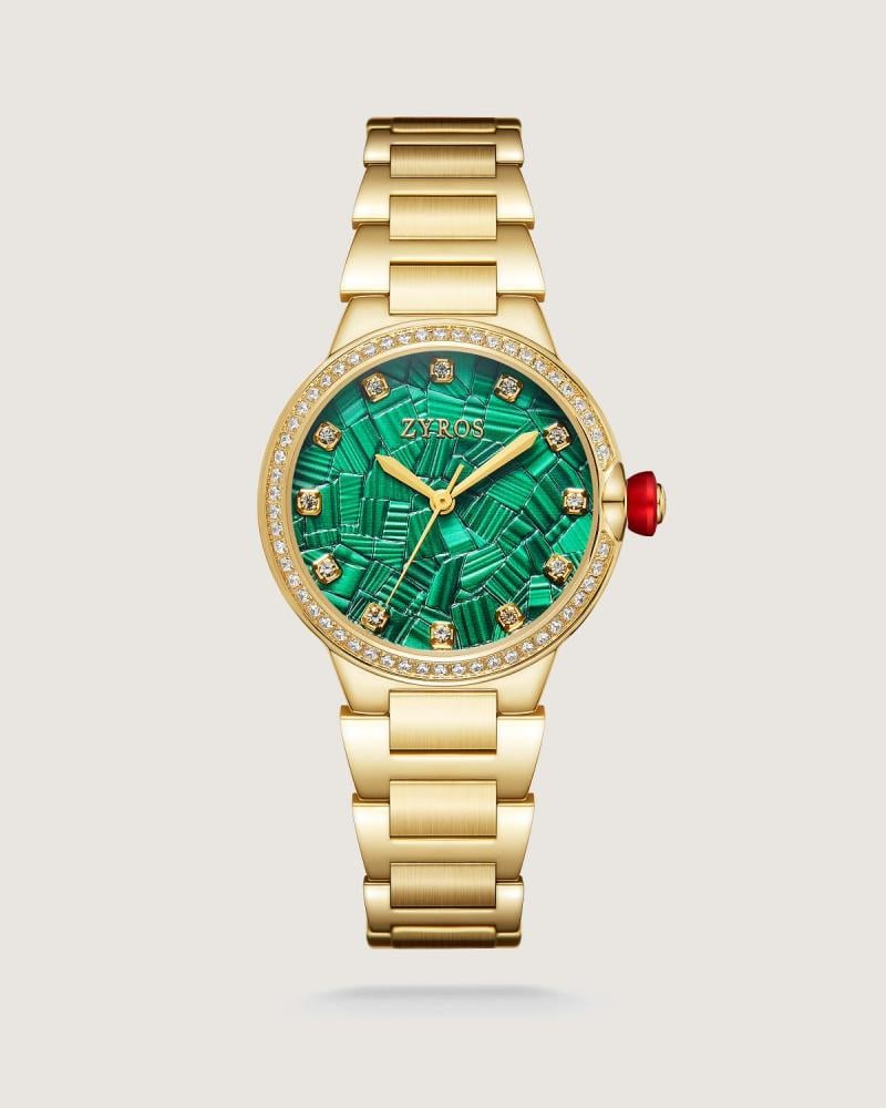 - الميناء: باللون الأخضر بتصميم ثلاثي الأبعاد وفصوص الزركون