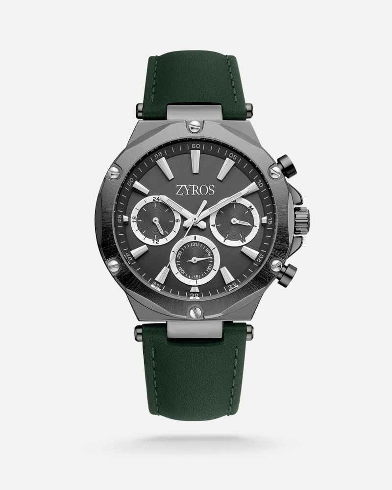 - ساعة رجالية بسير من الجلد بلون أخضر