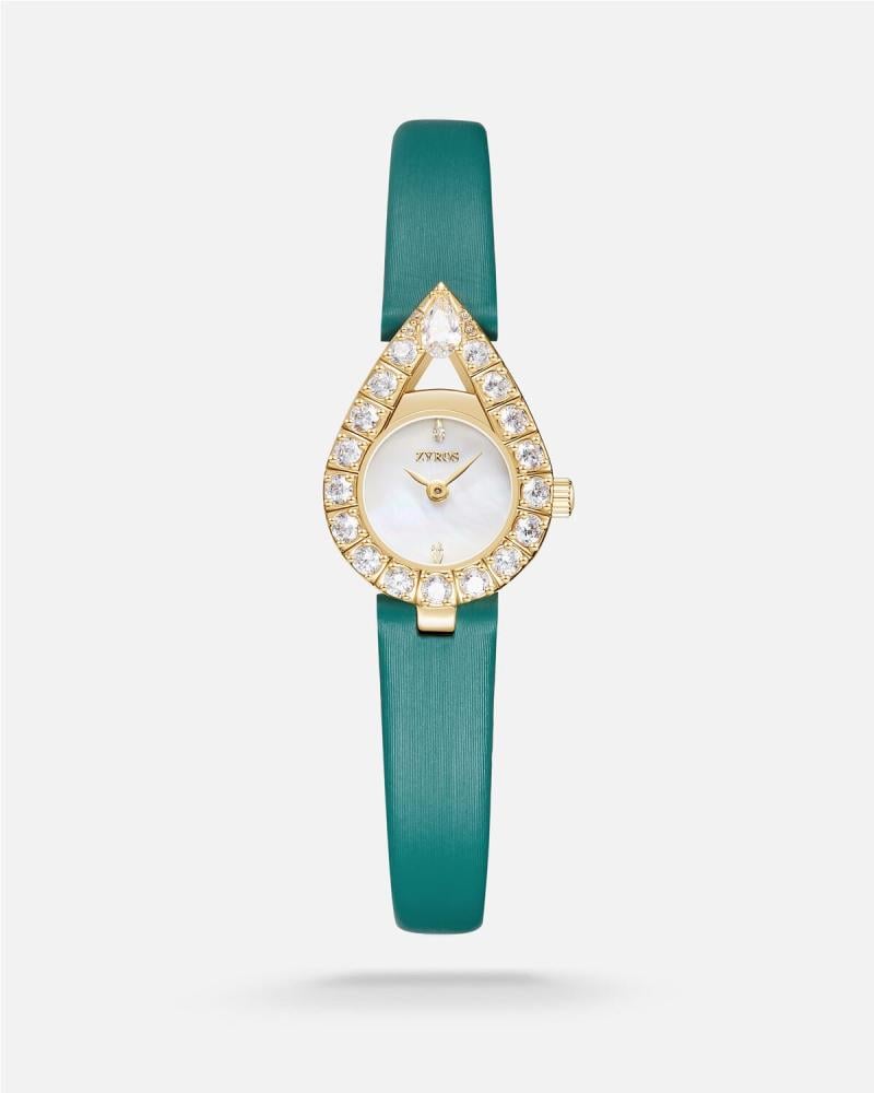 ساعة تخطف الأنظار بجمالها الفريد ، بسير جلدي أنيق يحتضن الميناء كقطرة زمن متلألئة تتزين بفصوص الزركون البراقة فتشع ببريق ناعم يروي جمال لحظاتك بأسلوب أنيق.