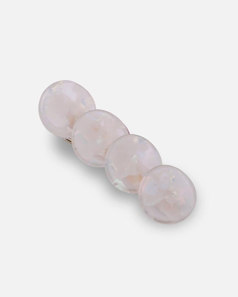 مشبك شعر رائع يتزين بأربع حلي دائرية بلون وردي لؤلؤي ساحر، تضفي عليه لمسة من الأناقة والأنوثة. الحُلي اللامعة تلتف حول المشبك برقة، كأنها تلتقط الضوء وتنثره بنعومة، مما يخلق تأثيرًا بديعًا يعكس الفخامة في كل لمسة. اللون الوردي اللؤلؤي يتناغم مع أي إطلالة، مما يجعل هذا المشبك خيارًا مثاليًا لإضافة لمسة من الرقي والجمال إلى شعرك. تصميمه الأنيق والبسيط يجعل منه قطعة مميزة يمكن ارتداؤها في المناسبات الخاصة أو لمجرد إضفاء لمسة من الفخامة على إطلالتك اليومية.
