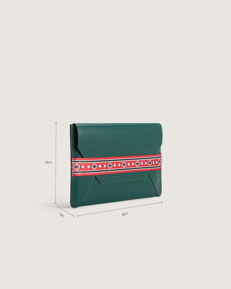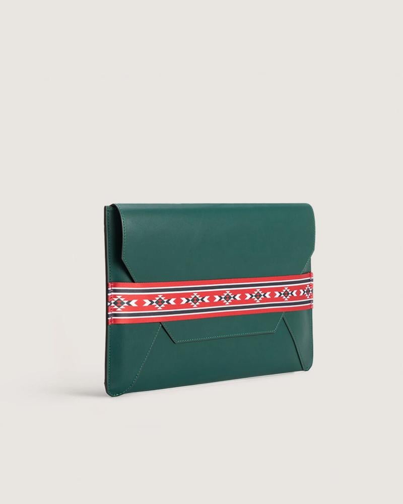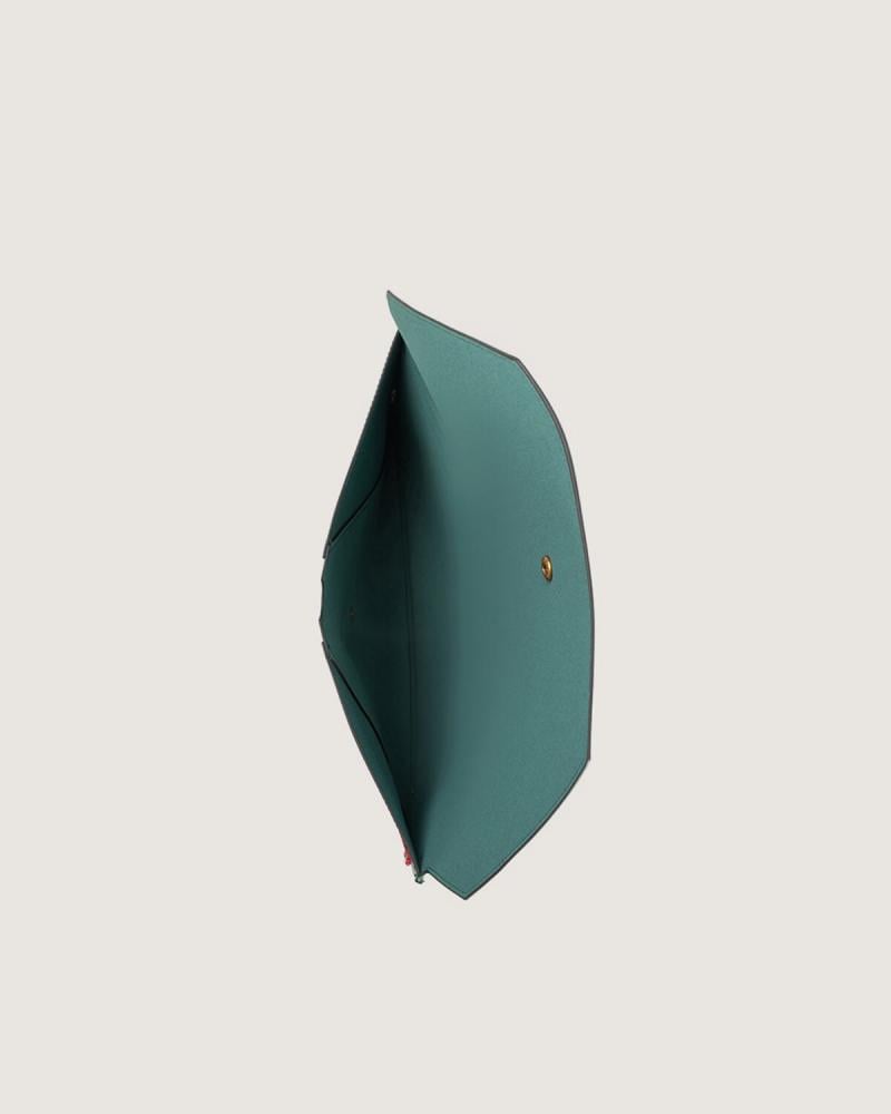 - شنطة للجنسين من الجلد باللون الأخضر وبتطريز مميز بتصميم شنطة كلتش