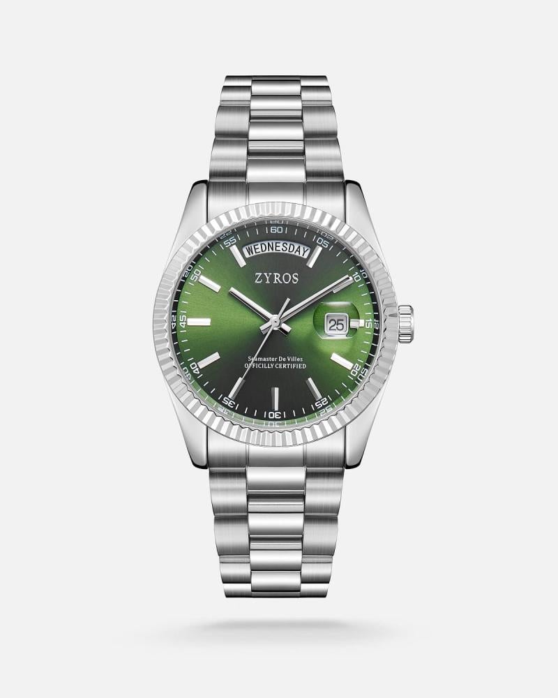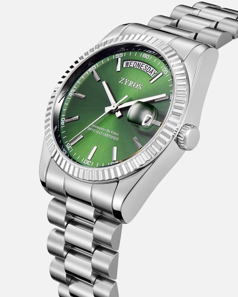 في هذه الساعة، يلتقي الزمن بالثبات. تصميمها يُحاكي وضوح الرؤية من حيث الوقت واليوم والتاريخ، وميناؤها الهادى الذي يترجم الوقت يروي سكونًا ووقارًا .عقارب و كأنها تمرّ على محطات من المجد، وسوار معدني من الستيل مصقول يوحي بتفاصيل لا تُجامل في أناقتها.تفاصيل تحاكي طبع الرجال في الشدة واللين .