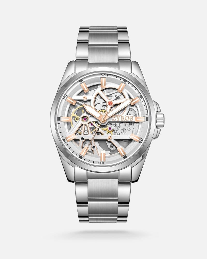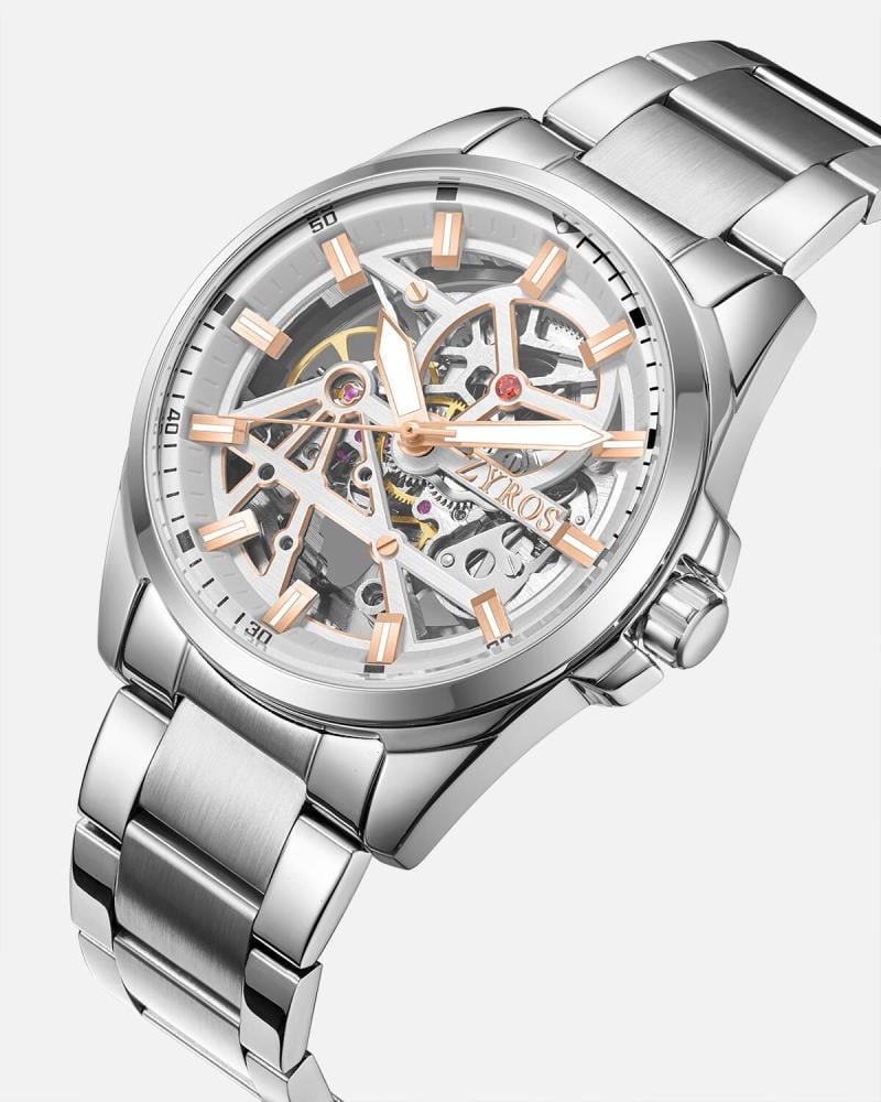 أناقة ميكانيكية مكشوفة. هيكل متين، يكشف عن قلب الساعة النابض. تفاصيل دقيقة، تروي قصة الوقت بأسلوب فريد. سوار فولاذي مريح، يواكب إيقاع حياتك.حيث يلتقي التصميم العصري بالدقة الميكانيكية.