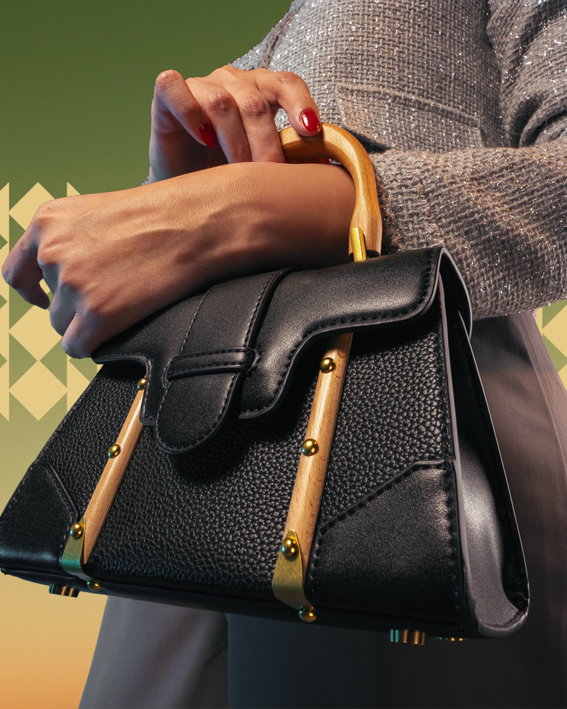 شنطة عملية متوسط الحجم بيد من الخشب وتفاصيل من الخشب