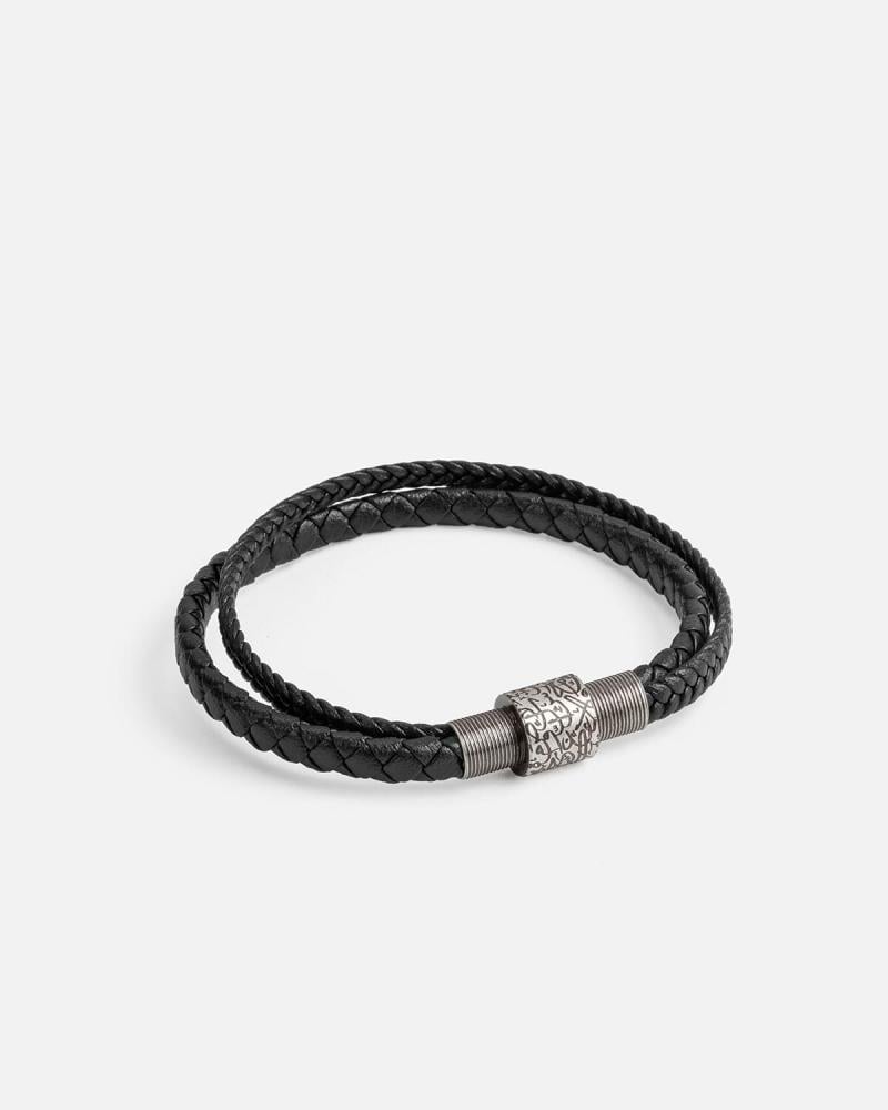 تتجسد الأناقة في أبسط تفاصيلها مع هذه الأسوارة الرجالية المصممة بأسلوب راقٍ ودقيق. حيث يلتف الجلد المجدول الرفيع حول المعصم بانسيابية، ليعكس طابعًا من الفخامة والتميز في كل جديلة. وفي منتصفه، تتألق حلية معدنية اسطوانية تتزين بزخارف الخط العربي ، تضيف لمسة من الحداثة والتفرد، كأنها توقيع خفي للرجل الذي يقدر التفاصيل الاستثنائية. أما القفل المغناطيسي المعدني، فيجمع بين العملية واللمسة العصرية، ليمنح تجربة ارتداء سلسة وثباتًا لا تشوبه شائبة. إنها ليست مجرد أسوارة، بل قطعة فنية تروي حكاية القوة والرقي في آنٍ واحد.