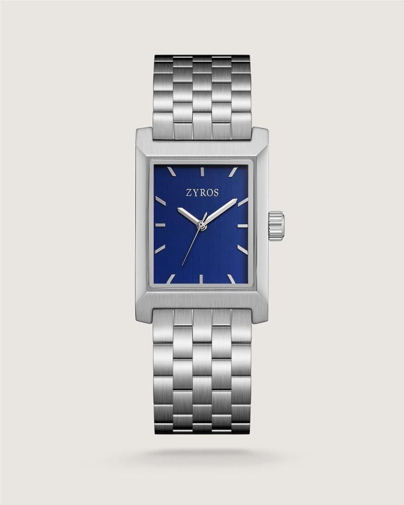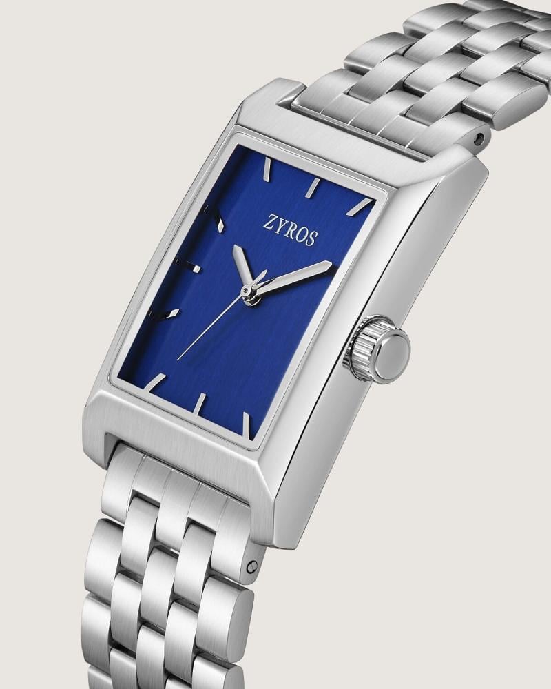 ساعة رجالية تنبض بالهيبة، بسير متين من الستيـل يلف المعصم بثبات، ومينا مستطيل التصميم يعكس حضوراً مختلفاً يجمع بين العصرية والكلاسيكية. تفاصيلها تحاكي الدقة؛ صلابة تشبه ثقة كل شخص بنفسه، وأناقة تُذكّر بفخر انتمائنا.