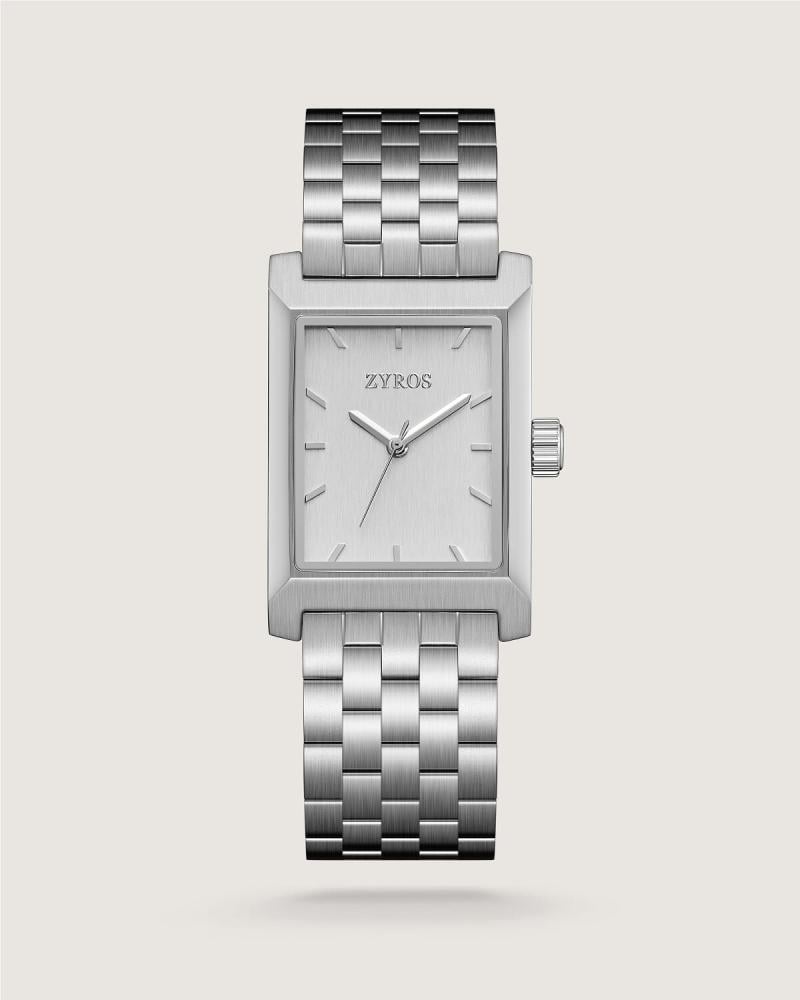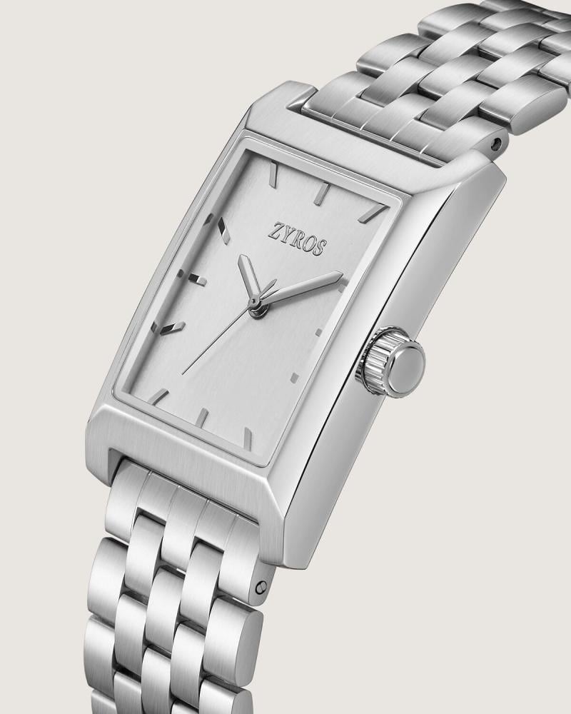 ساعة رجالية تنبض بالهيبة، بسير متين من الستيـل يلف المعصم بثبات، ومينا مستطيل التصميم يعكس حضوراً مختلفاً يجمع بين العصرية والكلاسيكية. تفاصيلها تحاكي الدقة؛ صلابة تشبه ثقة كل شخص بنفسه، وأناقة تُذكّر بفخر انتمائنا.
