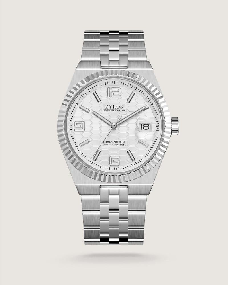 ساعة رجالية أنيقة تنبض بالقوة والهيبة، بلونها الفضي اللامع الذي يرمز للنقاء والاعتزاز، مع تفاصيل دقيقة على الميناء تعكس العراقة والفخامة. تجمع بين الحداثة والأصالة، لتُذكرك بالنبض الذي يمضي بخطوات واثقة نحو المجد، وتمنحك حضورًا يليق برجال اعتادوا أن يكونوا في الصفوف الأولى